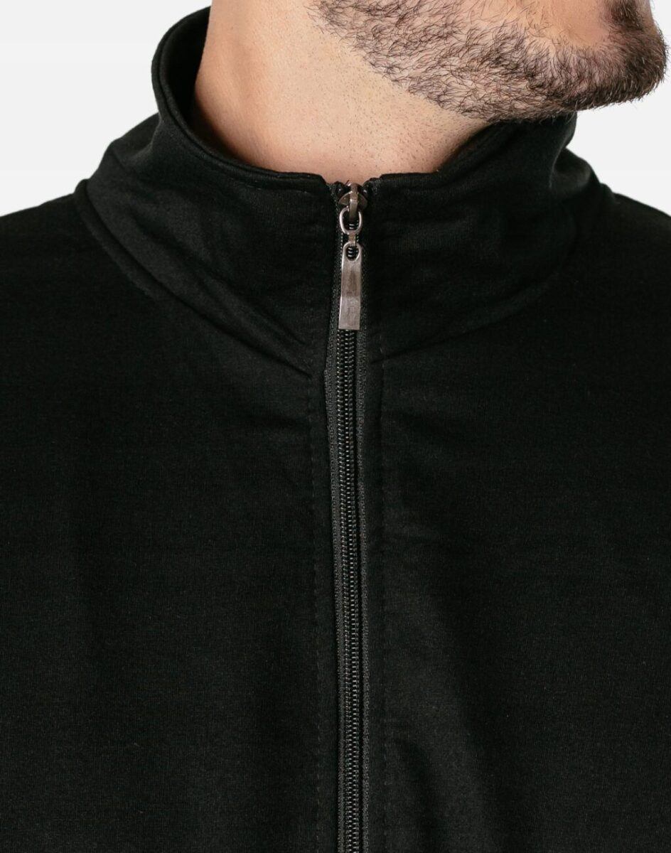 Bluza zasuwana jest w całości na zamek błyskawiczny, posiada dwie wpuszczane kieszenie na dłonie zasuwane na zamki. Dół bluzy oraz rękawy wykończone są szerokim elastycznym ściągaczem, co pozwala na precyzyjne dopasowanie bluzy do ciała i zapobiega utracie ciepła. Długość midi, która z powodzeniem zakrywa części ciała wrażliwe na chłód jak plecy na wysokości nerek i pośladki. Praktyczny wysoki kołnierz/stójka ochroni Twoją szyję przed zimnem i wiatrem, a także często zastępuje nawet szalik co jest bardzo wygodne. Możesz w niej chodzić na co dzień, idealnie nadaje się również do uprawiania różnych dyscyplin sportu i rekreacji.