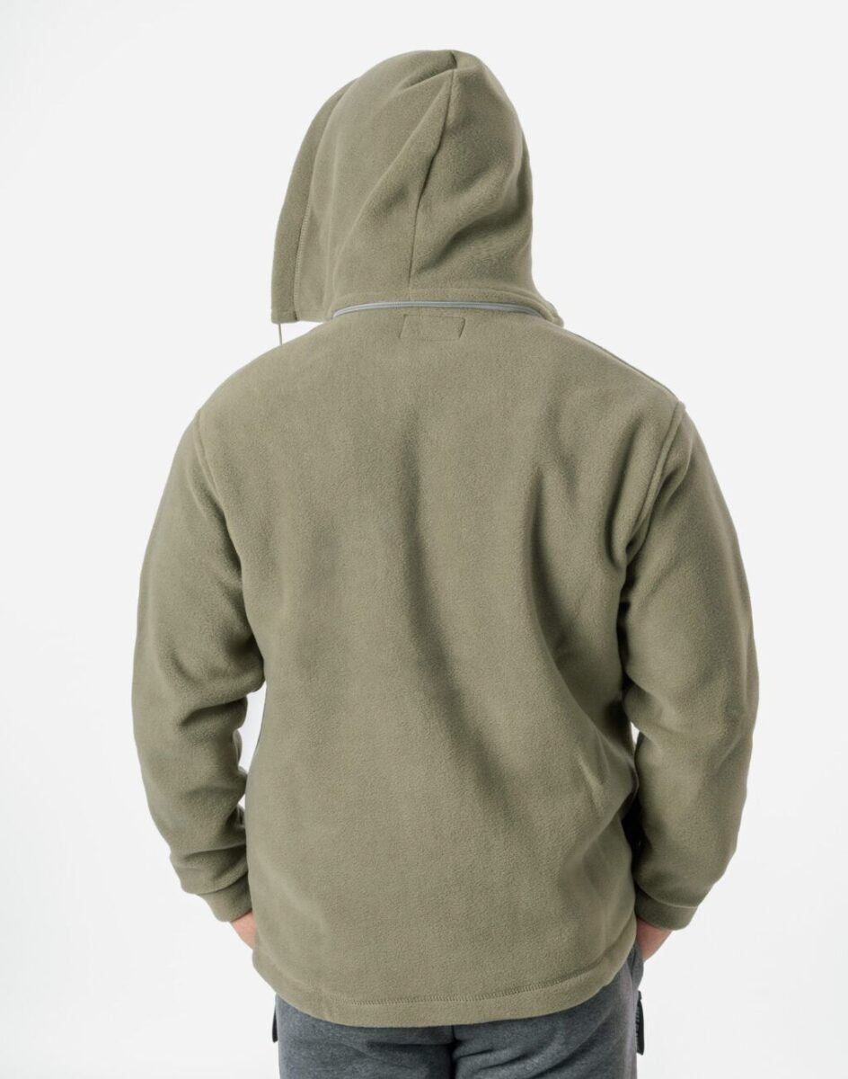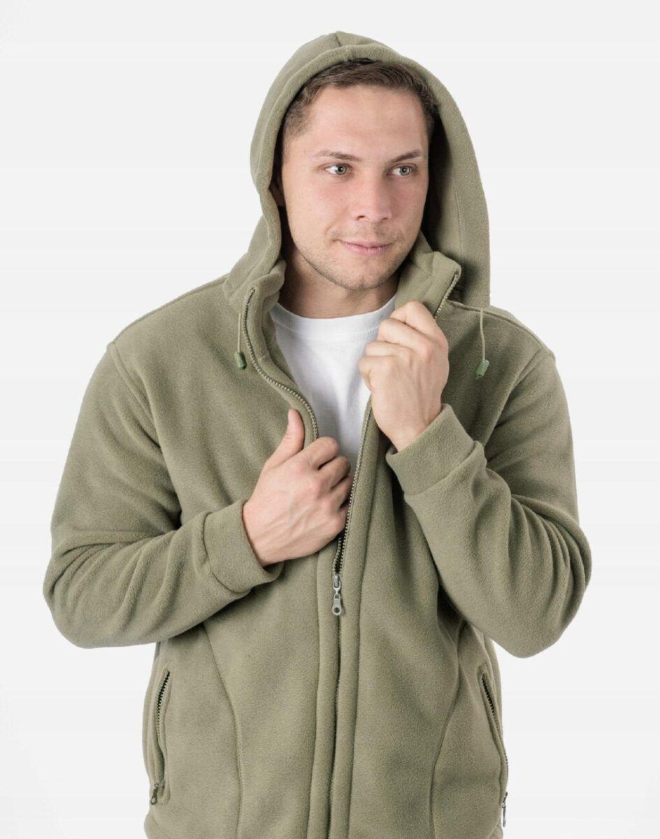 Bluza zasuwana jest w całości na zamek błyskawiczny. Posiada dwie wpuszczane kieszenie na dłonie i dwie zasuwane na eklery. Rękaw długi zakończony szerokim mankietem. Wysoki kołnierz/stójka skutecznie chroni podbródek i szyję a często zastępuje nawet szalik co jest bardzo wygodne. Ściągacze regulacyjne na dole bluzy z gumką i stoperem pozwalają na precyzyjne dopasowanie bluzy do ciała co znacznie zapobiega utracie ciepła. Znakomicie sprawdzi się w chłodniejsze dni a ciepły, odpinany kaptur osłoni Twoją głowę przed wiatrem i chłodem.