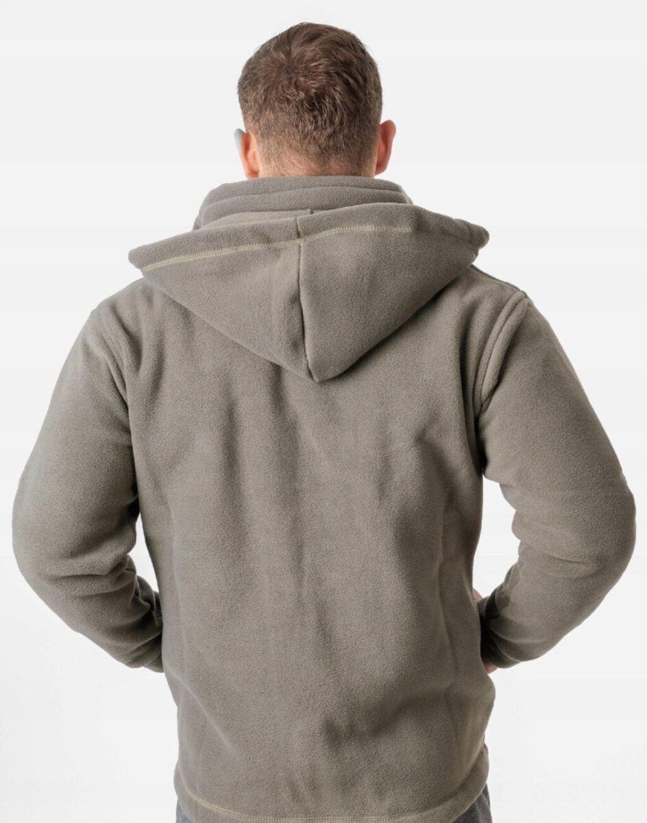 Bluza zasuwana jest w całości na zamek błyskawiczny. Posiada dwie wpuszczane kieszenie na dłonie i dwie zasuwane na eklery. Rękaw długi zakończony  szerokim mankietem. Wysoki kołnierz/stójka skutecznie chroni podbródek i szyję a często zastępuje nawet szalik co jest bardzo wygodne. Ściągacze regulacyjne na dole bluzy z gumką i stoperem pozwalają na precyzyjne dopasowanie bluzy do ciała co znacznie zapobiega utracie ciepła. Znakomicie sprawdzi się w chłodniejsze dni a ciepły, odpinany kaptur osłoni Twoją głowę przed wiatrem i chłodem.