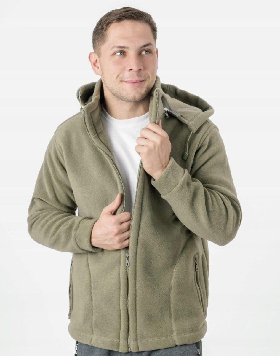 Sportowa ciepła bluza polarowa męska z kapturem