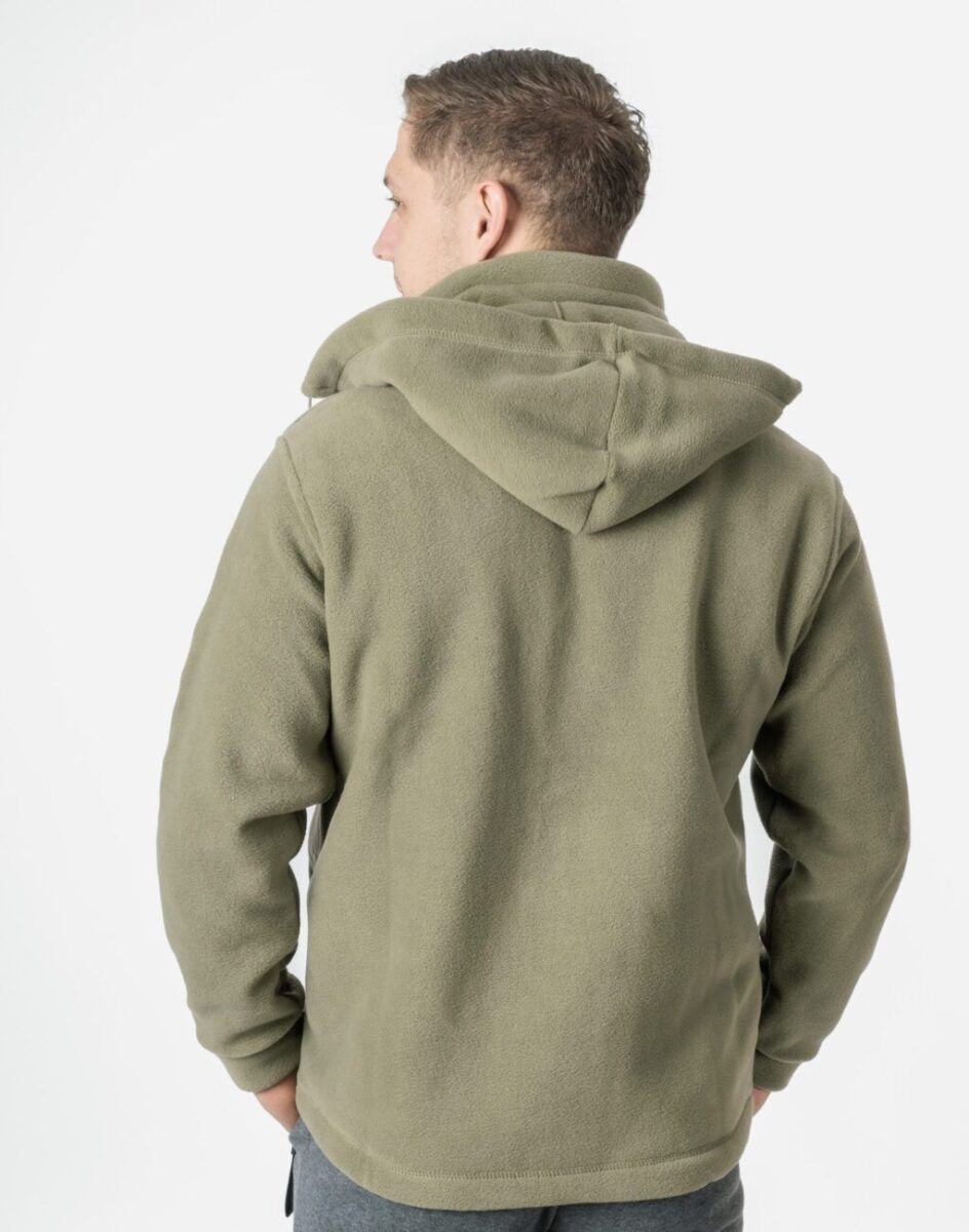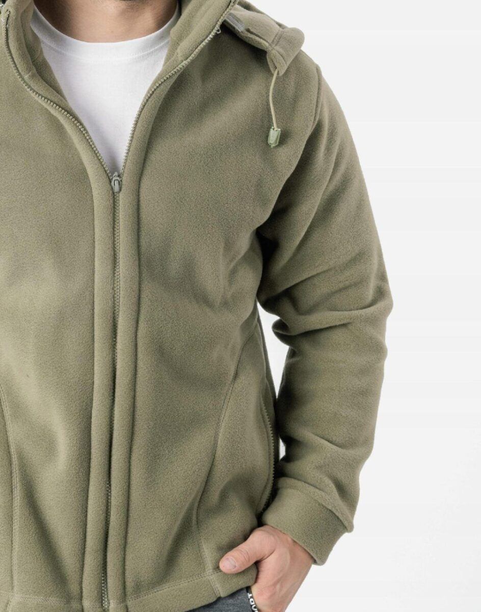 Bluza zasuwana jest w całości na zamek błyskawiczny. Posiada dwie wpuszczane kieszenie na dłonie i dwie zasuwane na eklery. Rękaw długi zakończony szerokim mankietem. Wysoki kołnierz/stójka skutecznie chroni podbródek i szyję a często zastępuje nawet szalik co jest bardzo wygodne. Ściągacze regulacyjne na dole bluzy z gumką i stoperem pozwalają na precyzyjne dopasowanie bluzy do ciała co znacznie zapobiega utracie ciepła. Znakomicie sprawdzi się w chłodniejsze dni a ciepły, odpinany kaptur osłoni Twoją głowę przed wiatrem i chłodem.