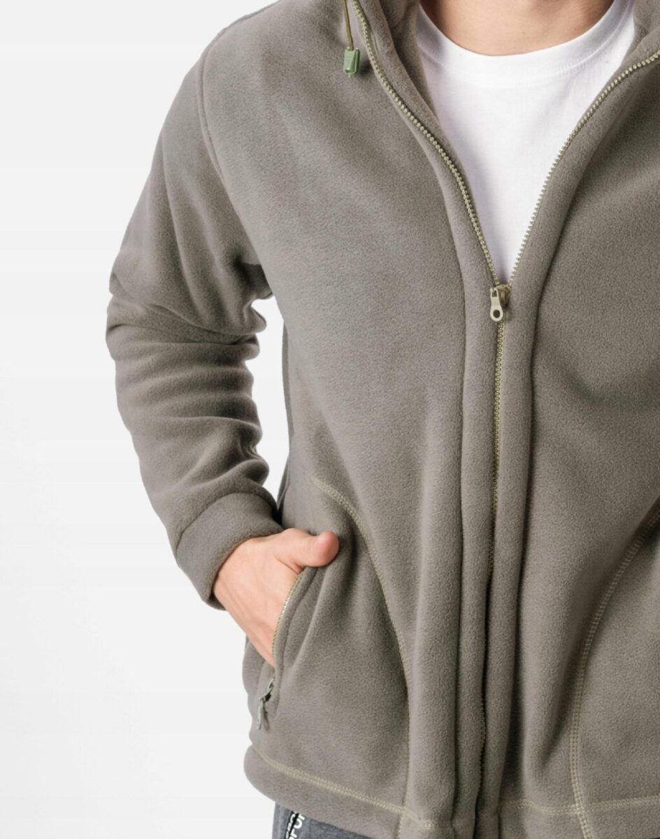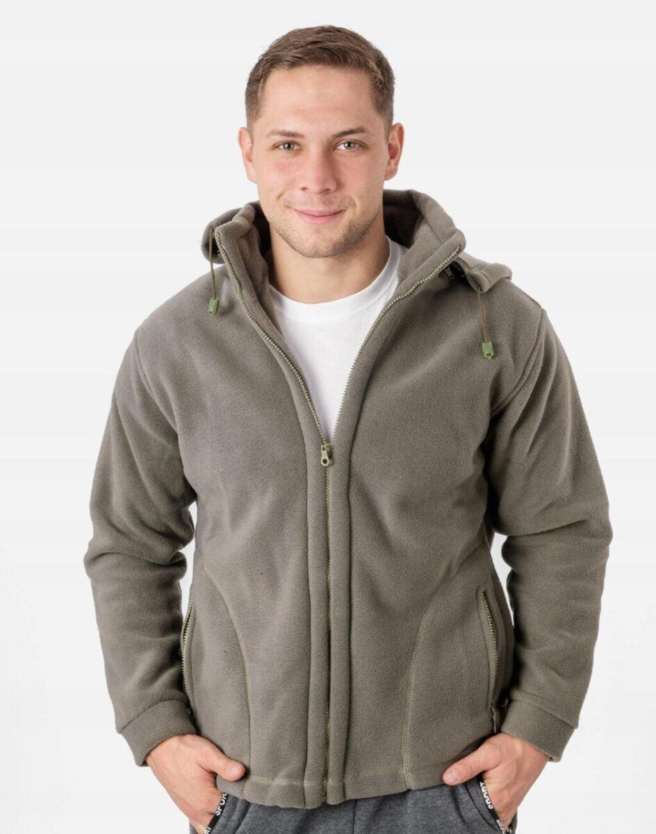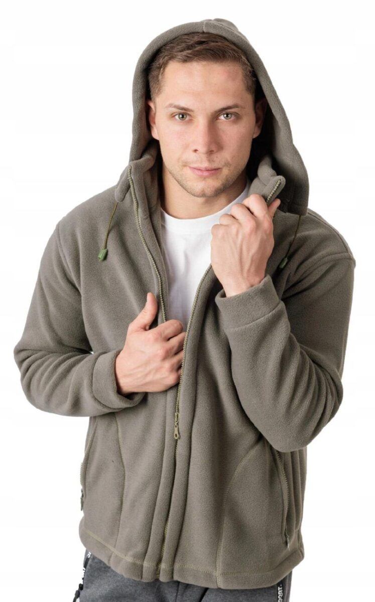 Bluza zasuwana jest w całości na zamek błyskawiczny. Posiada dwie wpuszczane kieszenie na dłonie i dwie zasuwane na eklery. Rękaw długi zakończony szerokim mankietem. Wysoki kołnierz/stójka skutecznie chroni podbródek i szyję a często zastępuje nawet szalik co jest bardzo wygodne. Ściągacze regulacyjne na dole bluzy z gumką i stoperem pozwalają na precyzyjne dopasowanie bluzy do ciała co znacznie zapobiega utracie ciepła. Znakomicie sprawdzi się w chłodniejsze dni a ciepły, odpinany kaptur osłoni Twoją głowę przed wiatrem i chłodem.