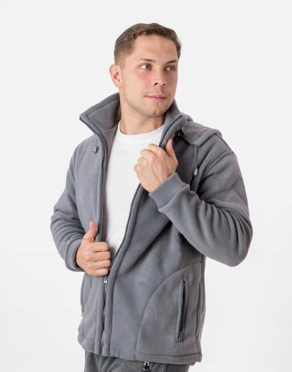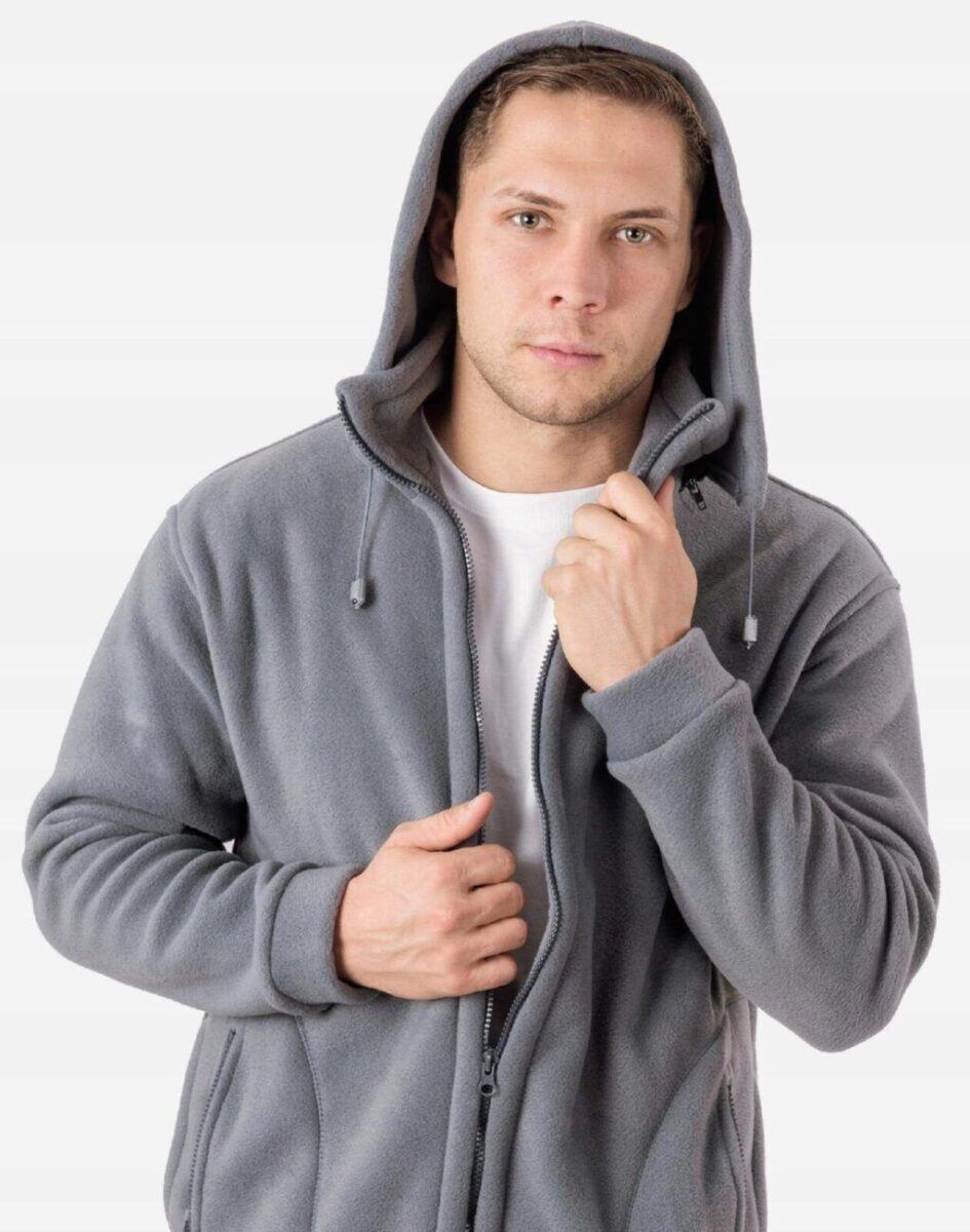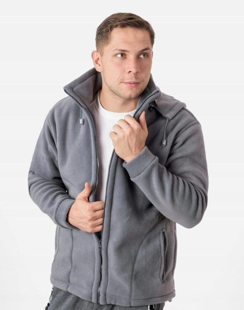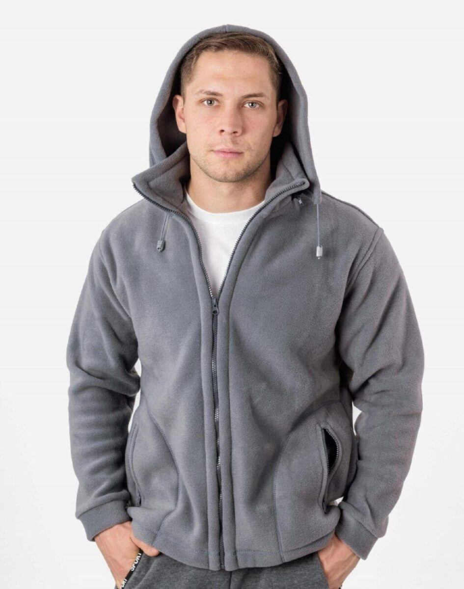 Sportowa ciepła bluza polarowa męska z kapturem