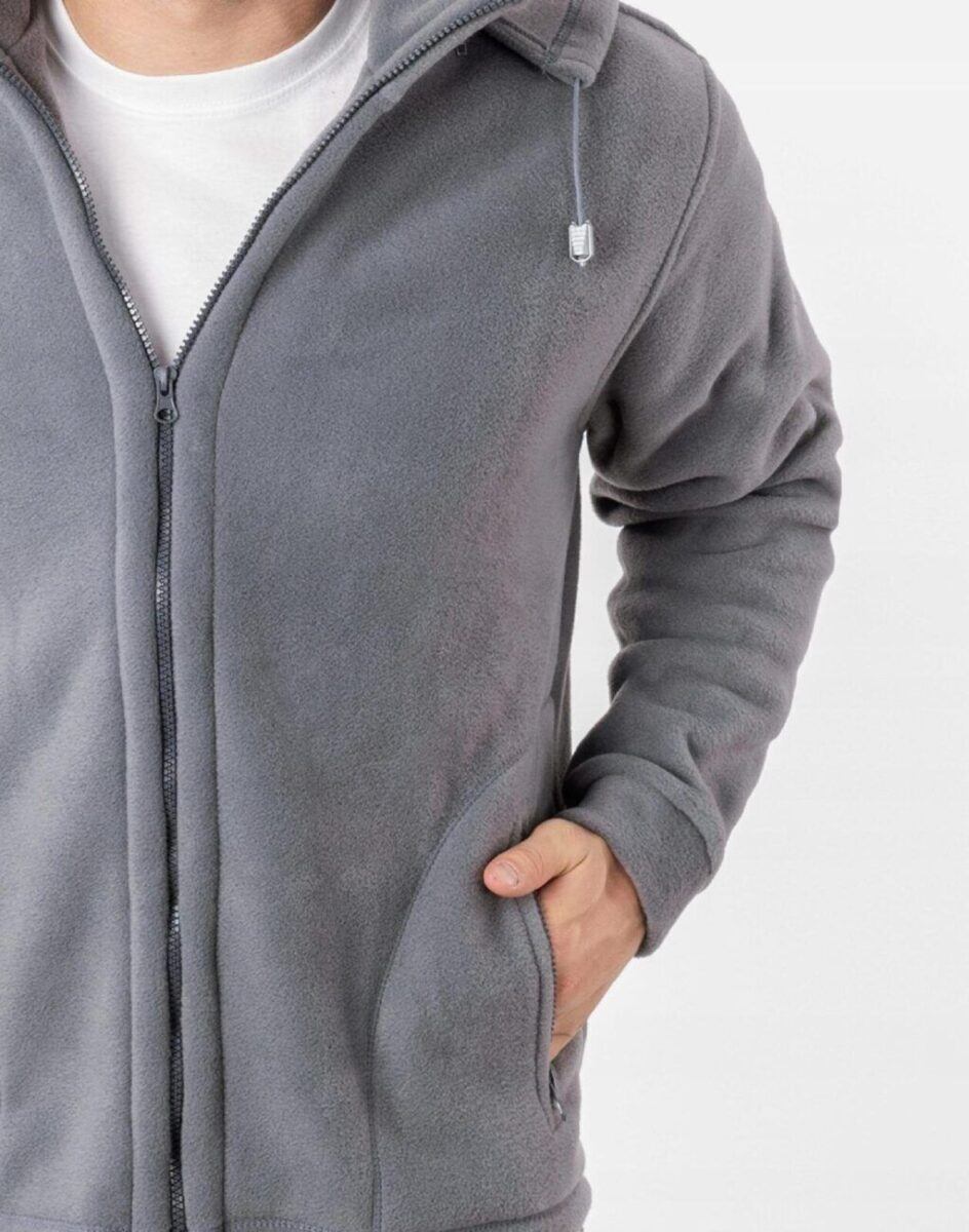 Bluza zasuwana jest w całości na zamek błyskawiczny. Posiada dwie wpuszczane kieszenie na dłonie i dwie zasuwane na eklery. Rękaw długi zakończony  szerokim mankietem. Wysoki kołnierz/stójka skutecznie chroni podbródek i szyję a często zastępuje nawet szalik co jest bardzo wygodne. Ściągacze regulacyjne na dole bluzy z gumką i stoperem pozwalają na precyzyjne dopasowanie bluzy do ciała co znacznie zapobiega utracie ciepła. Znakomicie sprawdzi się w chłodniejsze dni a ciepły, odpinany kaptur osłoni Twoją głowę przed wiatrem i chłodem.