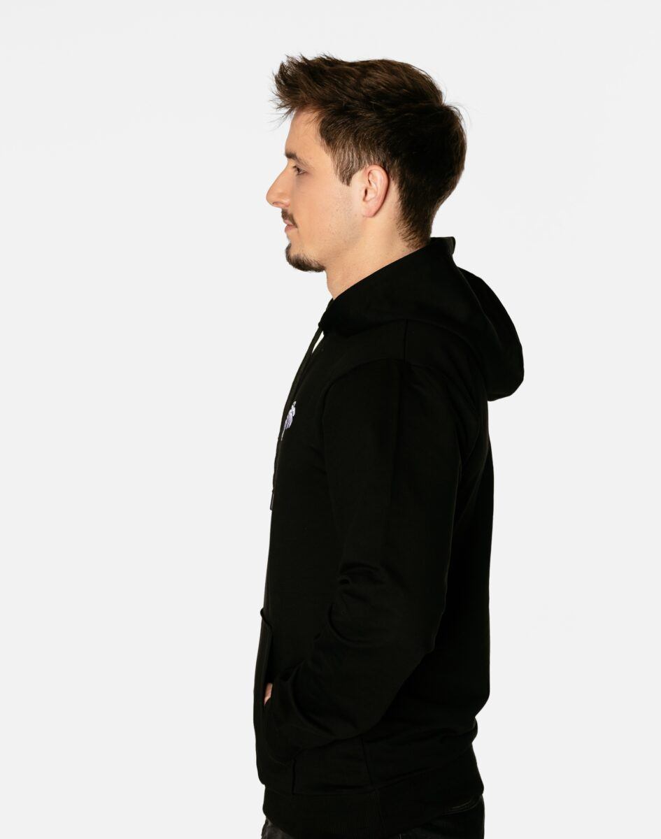 Sportowa bluza męska typu kangurka wyprodukowana dzianiny wiskozowej, zapewniającej maksymalną wygodę i komfort użytkowania. Wiskoza jest jednym z najlepiej oddychających i przyjaznych dla skóry materiałów. Jest przewiewna i lekka wyprodukowana z włókien celulozy, co sprawia iż gwarantuje dobre właściwości higroskopijne, izolację cieplną, świetnie pochłania pot i wodę, odprowadza je z powierzchni skóry przez co jest bardzo przyjemna w noszeniu. To z kolei sprawia, iż wilgotne ubrania nie przywierają do ciała i pozwalają skórze oddychać. Sam materiał jest wyjątkowo gładki, nie uczula i odznacza się dużą miękkością. Wysoka jakość zastosowanej do produkcji dzianiny to także gwarancja pełnej swobody ruchów oraz stabilności rozmiarów i kolorów po wielokrotnym praniu. Klasyczna, gładka, wkładana przez głowę, posiada podwójną wygodną kieszeń tak zwaną „kangurkę” i zintegrowany kaptur z możliwością regulacji wielkości i dopasowania taśmowym ściągaczem. Dół bluzy oraz rękawy wykończone szerokim elastycznym ściągaczem co pozwala na precyzyjne dopasowanie bluzy do ciała i zapobiega utracie ciepła. Długość midi, która z powodzeniem zakrywa części ciała wrażliwe na chłód jak plecy na wysokości nerek. Ergonomiczny krój bluzy nie ogranicza swobody ruchów co wpływa pozytywnie na wygodę użytkowania. Możesz w niej chodzić na co dzień, idealnie nadaje się również do uprawiania różnych dyscyplin sportu i rekreacji.