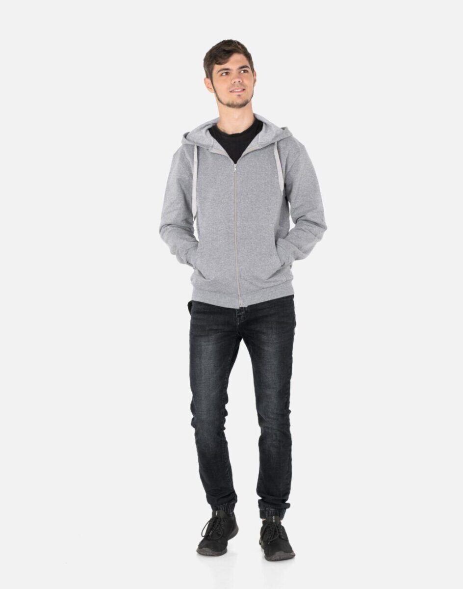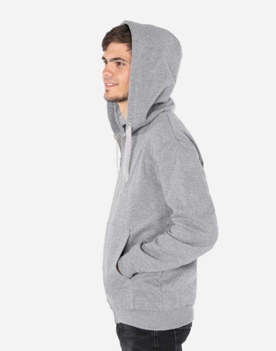 Bluza uszyta jest z wysokiej jakości dzianiny dresowej 100% bawełnianej o gramaturze 280 g/m2. Naturalna bawełna gwarantuje wspaniałą izolację cieplną, wchłanianie potu i oddychanie skóry. Bluza zasuwana jest w całości na zamek błyskawiczny i posiada dwie wpuszczane kieszenie na dłonie. Dół bluzy oraz rękawy wykończone są elastycznym ściągaczem, co pozwala na precyzyjne dopasowanie bluzy do ciała i zapobiega utracie ciepła. Wewnętrzna strona bluzy posiada wykończenie typu „MESCH” (fabrycznie wykończona jest miłym w dotyku i przyjemnym dla ciała meszkiem tzw. „szczotkowana”) zapewniające bardzo przyjemny kontakt ze skórą oraz komfort cieplny, natomiast zewnętrzna powierzchnia jest gładka. Długość midi, która z powodzeniem zakrywa części ciała wrażliwe na chłód jak plecy na wysokości nerek. Znakomicie sprawdzi się w chłodniejsze dni, a praktyczny kaptur z możliwością regulacji wielkości i dopasowania skutecznie ochroni Twoją głowę przed wiatrem i chłodem. Możesz w niej chodzić na co dzień, idealnie nadaje się również do uprawiania różnych dyscyplin sportu i rekreacji.