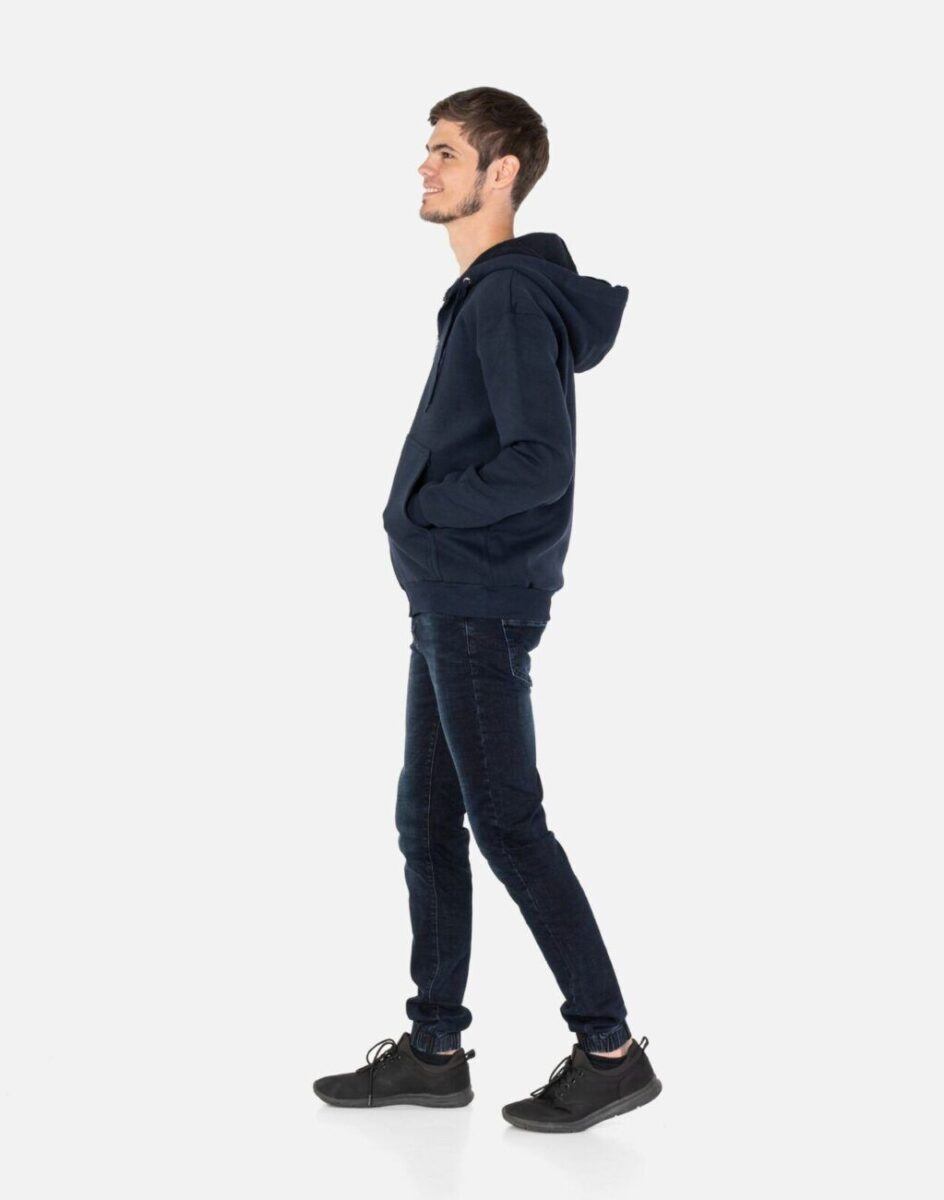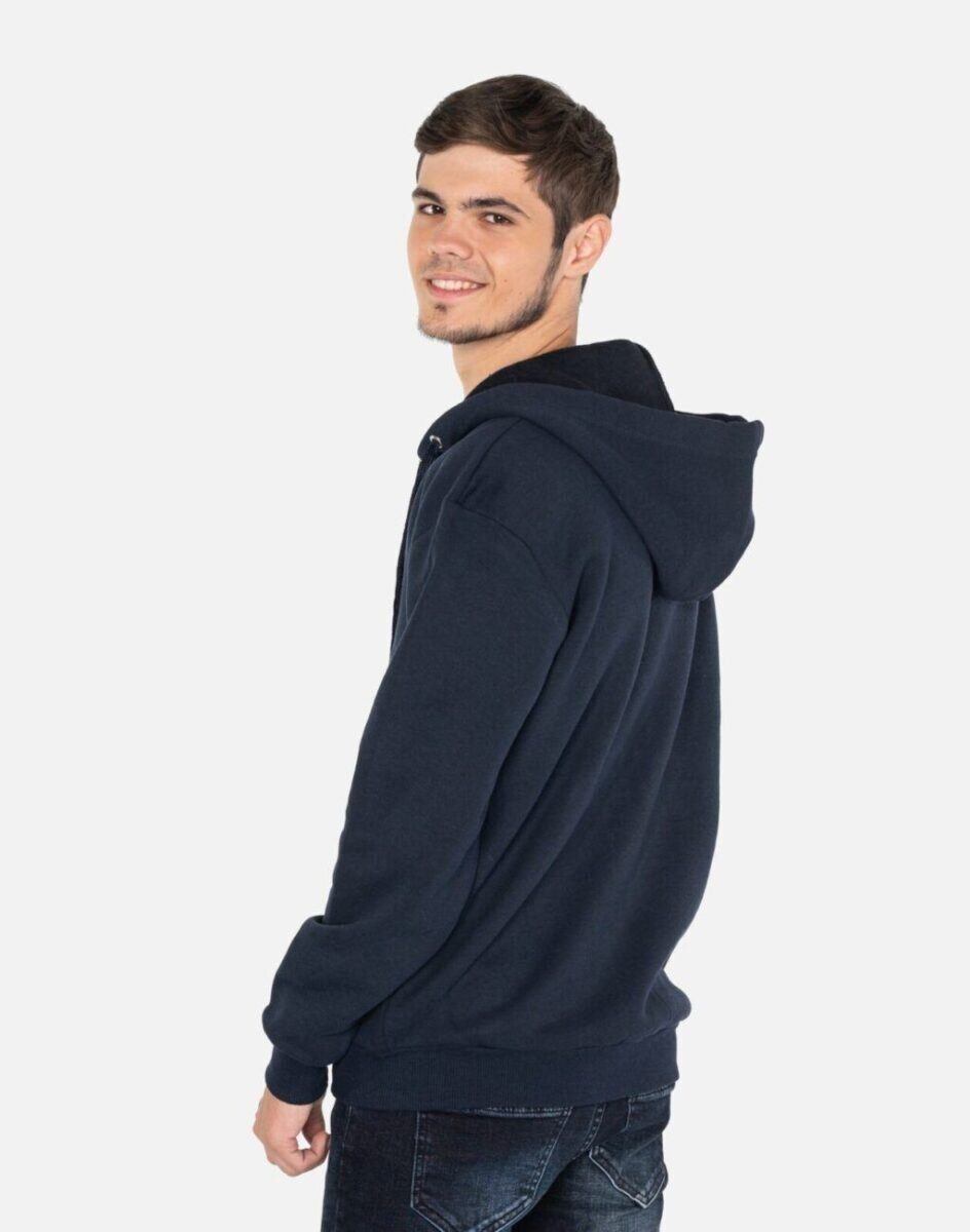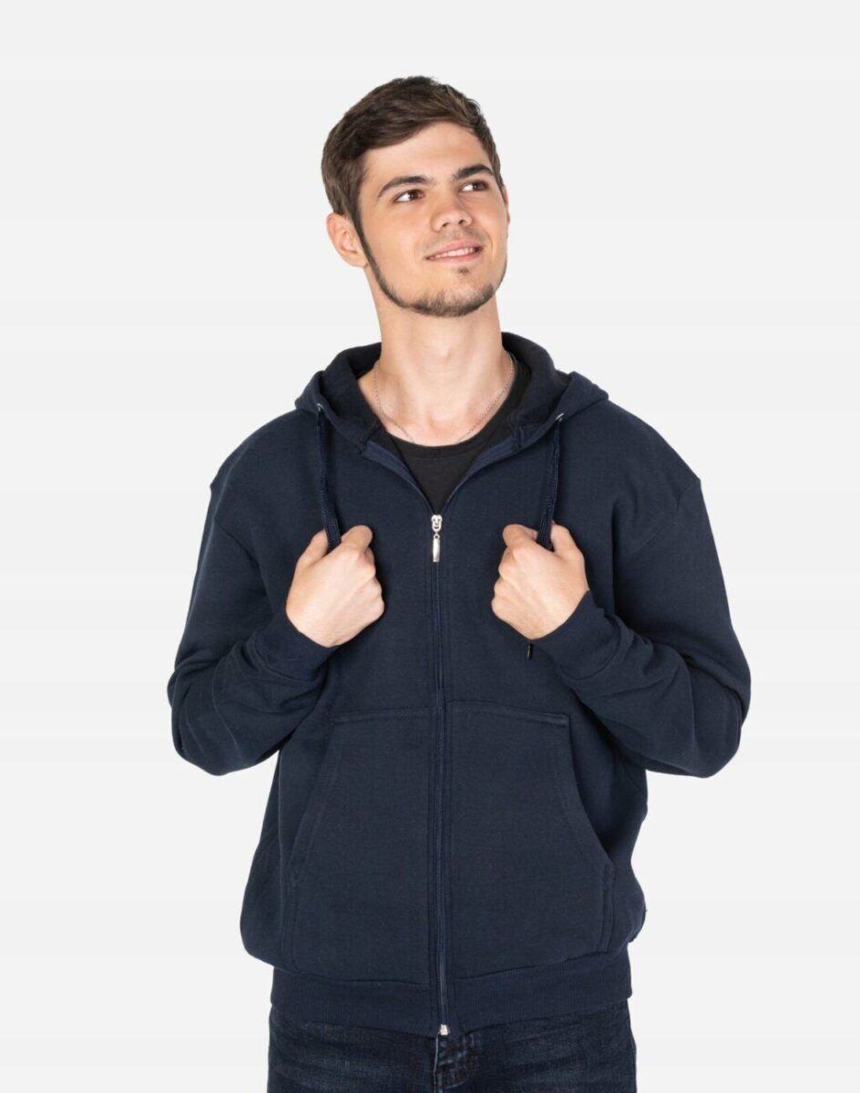 Bluza uszyta jest z wysokiej jakości dzianiny dresowej 100% bawełnianej o gramaturze 280 g/m2. Naturalna bawełna gwarantuje wspaniałą izolację cieplną, wchłanianie potu i oddychanie skóry. Bluza zasuwana jest w całości na zamek błyskawiczny i posiada dwie wpuszczane kieszenie na dłonie. Dół bluzy oraz rękawy wykończone są elastycznym ściągaczem, co pozwala na precyzyjne dopasowanie bluzy do ciała i zapobiega utracie ciepła. Wewnętrzna strona bluzy posiada wykończenie typu „MESCH” (fabrycznie wykończona jest miłym w dotyku i przyjemnym dla ciała meszkiem tzw. „szczotkowana”) zapewniające bardzo przyjemny kontakt ze skórą oraz komfort cieplny, natomiast zewnętrzna powierzchnia jest gładka. Długość midi, która z powodzeniem zakrywa części ciała wrażliwe na chłód jak plecy na wysokości nerek. Znakomicie sprawdzi się w chłodniejsze dni, a praktyczny kaptur z możliwością regulacji wielkości i dopasowania skutecznie ochroni Twoją głowę przed wiatrem i chłodem. Możesz w niej chodzić na co dzień, idealnie nadaje się również do uprawiania różnych dyscyplin sportu i rekreacji.