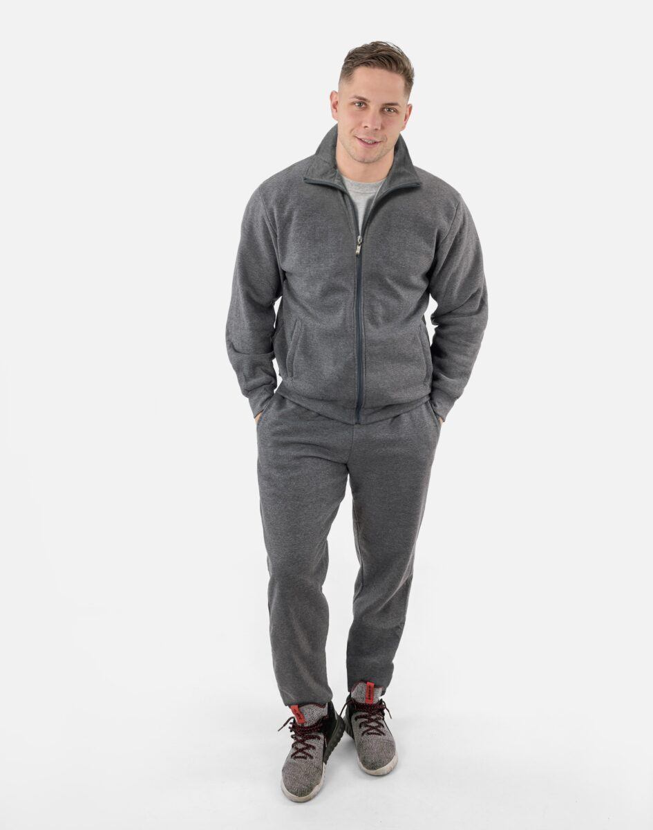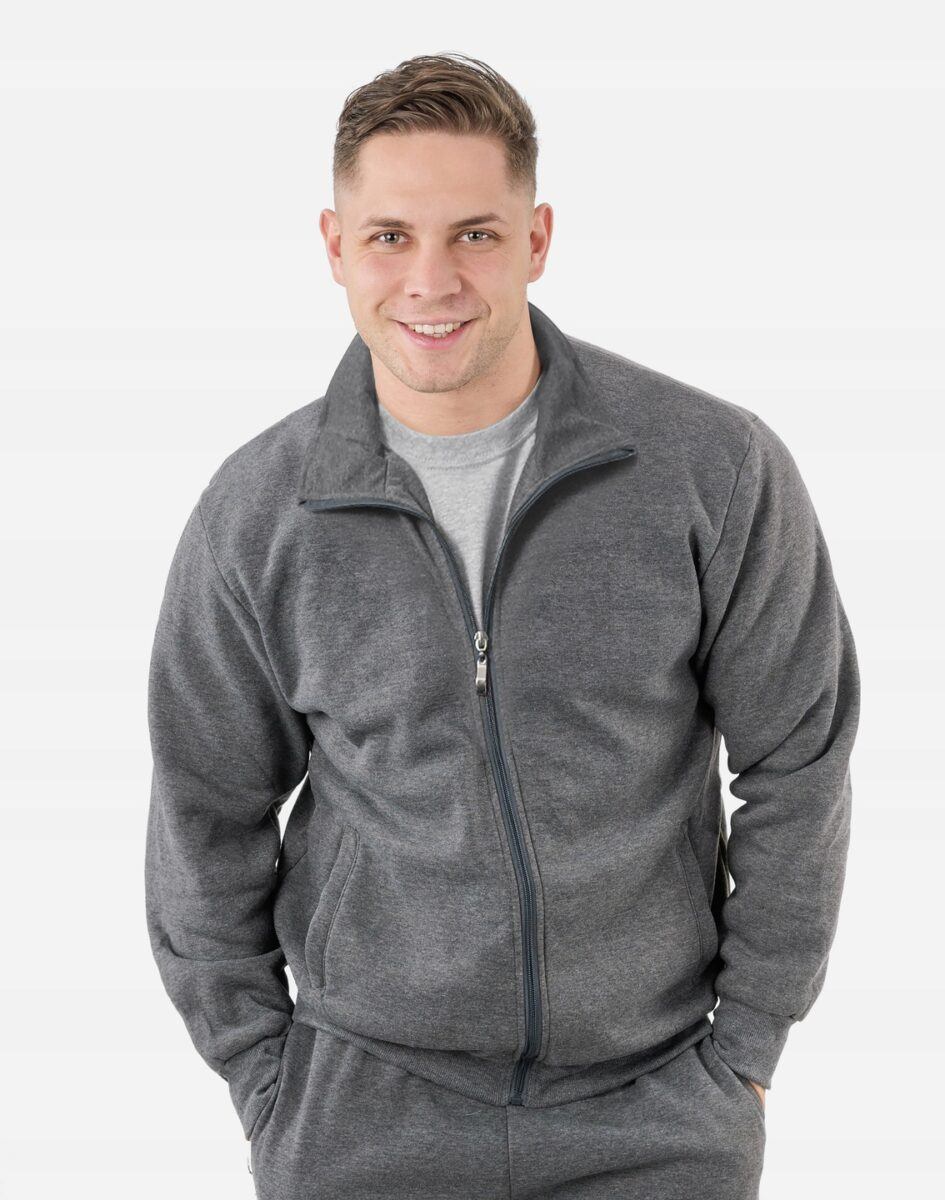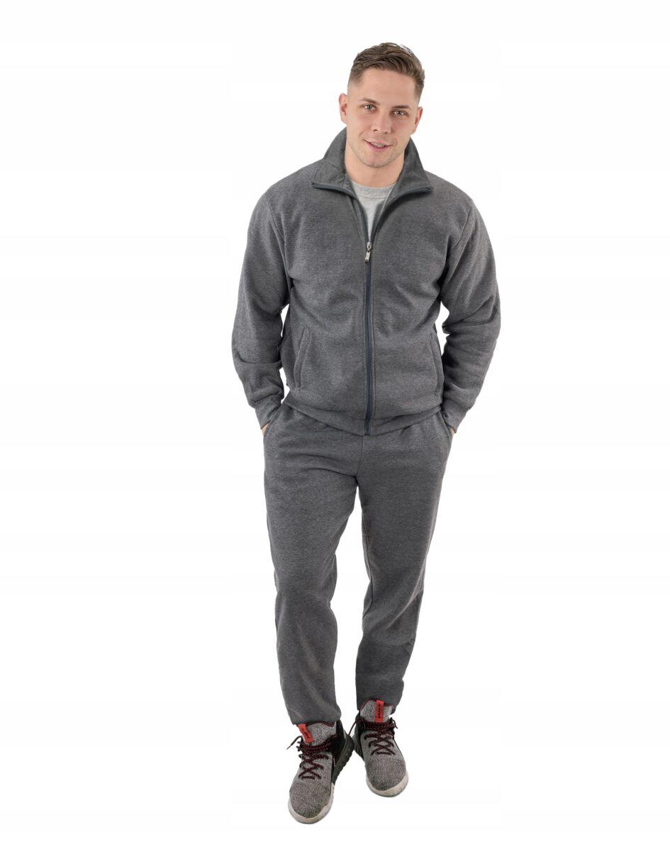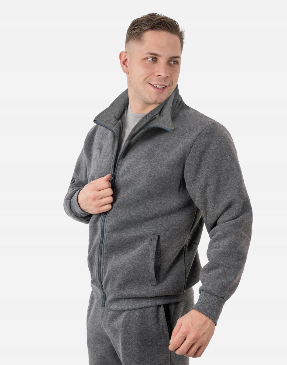 Ciepły komplet dresowy męski składający się z bluzy zasuwanej na zamek błyskawiczny i wygodnych sportowych spodni z klasyczną prostą nogawką. Wykonany z dzianiny dresowej bawełnianej o gramaturze 320 g/m2 z dodatkiem poliestru, miękkiej i ciepłej dostosowanej do użytku w zmiennych warunkach i niskiej temperaturze zapewniającej wysoki współczynnik ochrony termicznej w stosunku do wagi. Naturalna bawełna gwarantuje wspaniałą izolację cieplną, wchłanianie potu i oddychanie skóry a dodatek poliestru to gwarancja pełnej swobody ruchów oraz stabilności rozmiarów i koloru po wielokrotnym praniu. Wewnętrzna strona dzianiny posiada wykończenie typu "MESCH" (fabrycznie wykończona jest miłym w dotyku i przyjemnym dla ciała meszkiem tzw. "szczotkowana") zapewniające bardzo przyjemny kontakt ze skórą oraz komfort cieplny. Zewnętrzna powierzchnia dresu jest gładka.