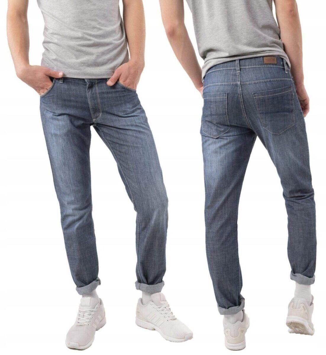 Fason typu REGULAR FIT czyli model z prostymi nogawkami i standardowym stanem, stylowy i dzięki dodatkowi streczu wyjątkowo wygodny. Spodnie celowo postarzono, by uzyskać efekt ciekawy i zdecydowanie niebanalny. Są super trendy, zaskakują a także nabierają zupełnie nowego charakteru i oryginalnego wyglądu dzięki rozjaśnieniom, przetarciom i efektowi sprania „used-look” w stylu spranego dżinsu na udach, kieszeniach oraz z tyłu przez co doskonale wpisują się w światowe modowe trendy i są przy tym wygodne i trwałe.
