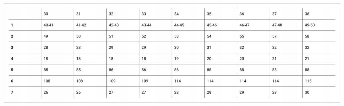 Obwód pasa: 82-84cm (Sprawdź pozostałe wymiary w tabeli)