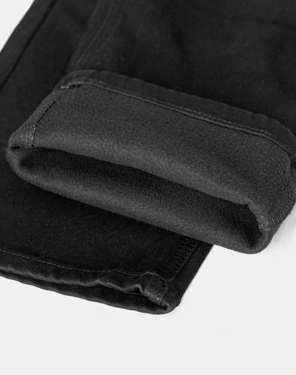 Oferowane przez nas spodnie są unikalnym połączeniem wysokiej jakości czarnej tkaniny jeansowej DenimSuper Black, a od wewnątrz bardzo lekkiego, ciepłego i przyjaznego dla ciała polaru. Warstwa wewnętrzna spodni wykonana z polaru ma za zadanie zapewnić oddychalność i maksymalną ochronę termiczną w zmiennych warunkach pogodowych i niskiej temperaturze. Wykończenie wewnętrznej strony spodni polarem zapewnia bardzo wysoki wskaźnik ochrony termicznej, jak również zdecydowanie podnosi komfort użytkowania tych spodni jesienią, a zwłaszcza zimą. Spodnie są przez to bardzo ciepłe, przyjemne dla ciała i oddychające (utrzymują ciepły i suchy mikroklimat skóry), a jednocześnie wyjątkowo lekkie.