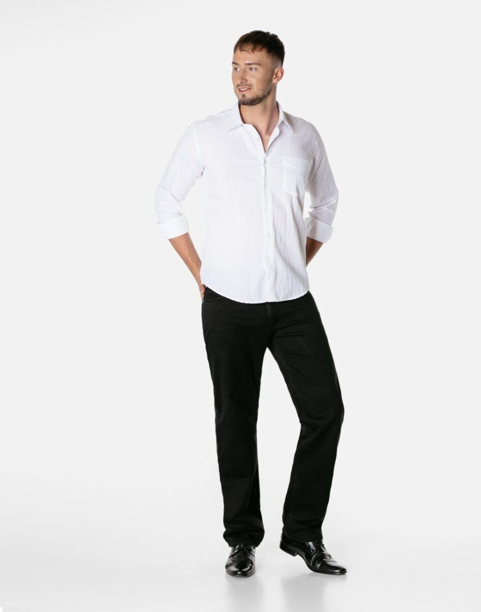 - Nogawka: klasyczna, prosta „Regular Fit”