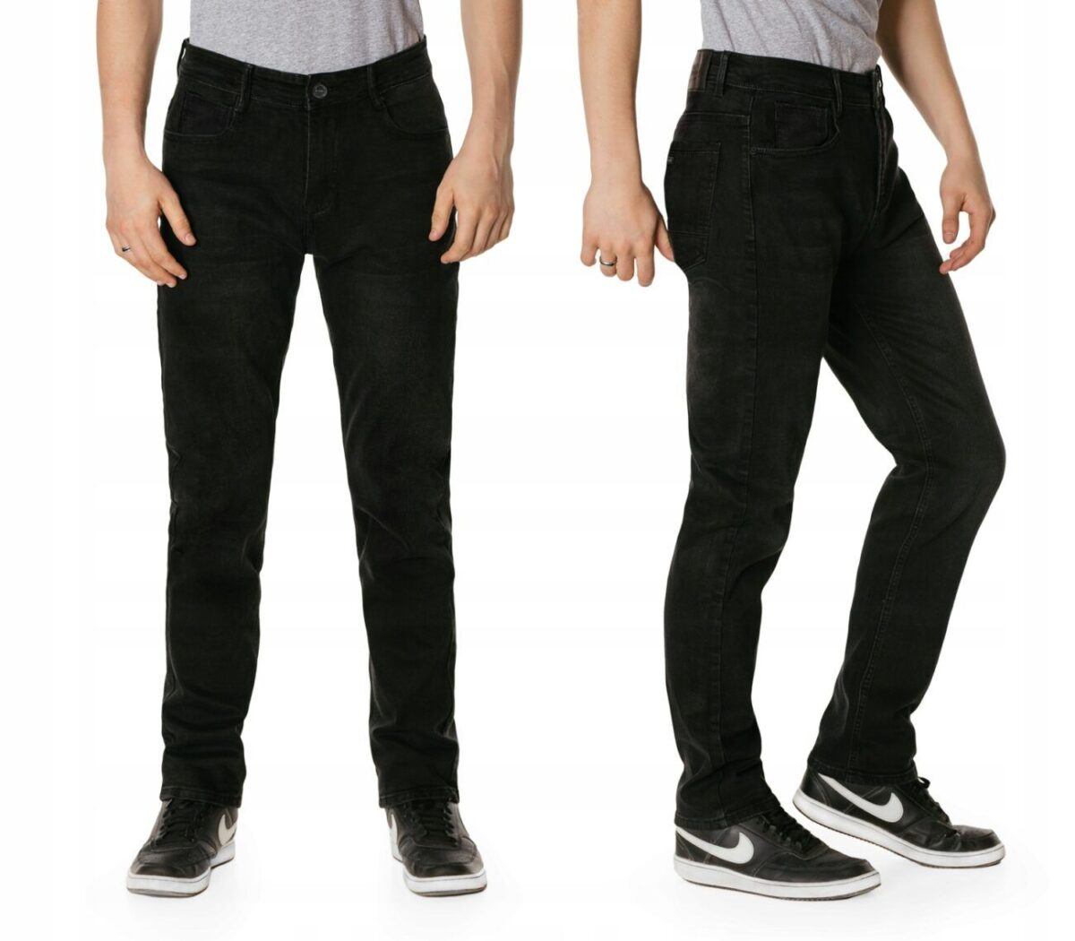 Ciepłe Spodnie Męskie Czarne Jeansy Ocieplone Polarem