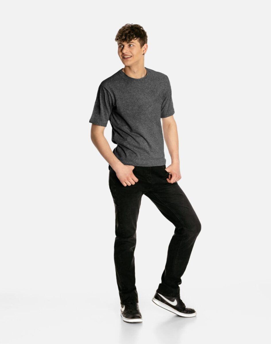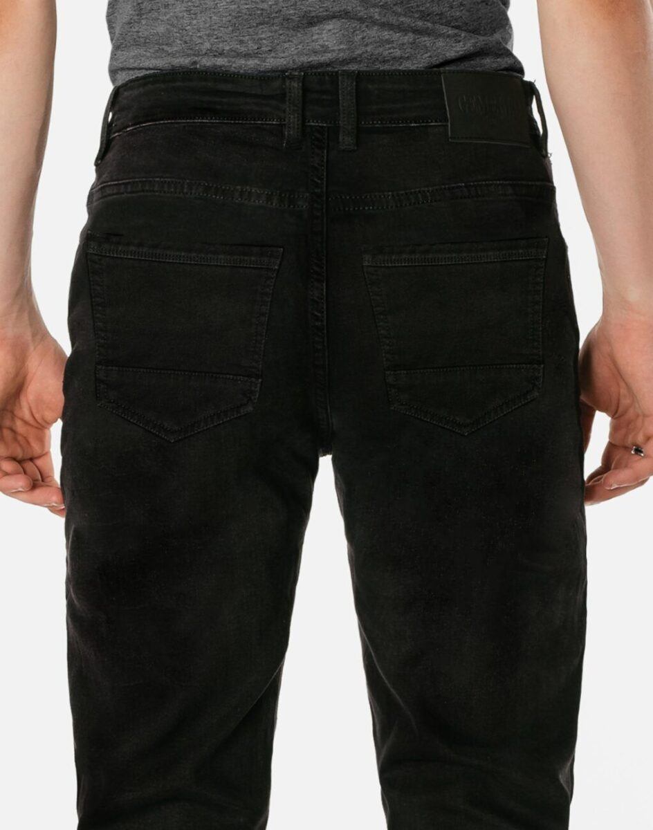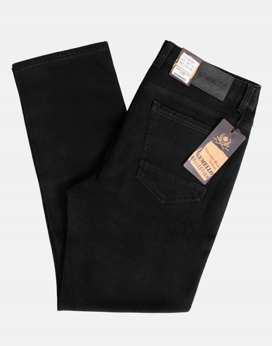 Ciepłe spodnie jeansowe męskie w kolorze czarnym „Dark Black” na jesień zimę z podwyższonym stanem i ocieplone od wewnętrznej strony polarem. Zapinane są na zamek błyskawiczny i metalowy guzik sygnowany logiem firmy. Z przodu mają dwie kieszonki zaokrąglone oraz bilonówkę, a na tyle klasyczne kieszenie naszywane jak w typowych spodniach jeansowych. W pasie szlufki umożliwiające stylizacje z paskiem. Najbardziej podatne na uszkodzenia miejsca wzmocnione są dodatkowymi przeszyciami i metalowymi nitami. Uszyte z mocnej tkaniny jeansowej z niewielkim dodatkiem poliestru dzięki czemu spodnie są bardziej elastyczne co pozwala na pełną swobodę ruchów, daje komfort przy siadaniu i zapewnia ogromny komfort noszenia.