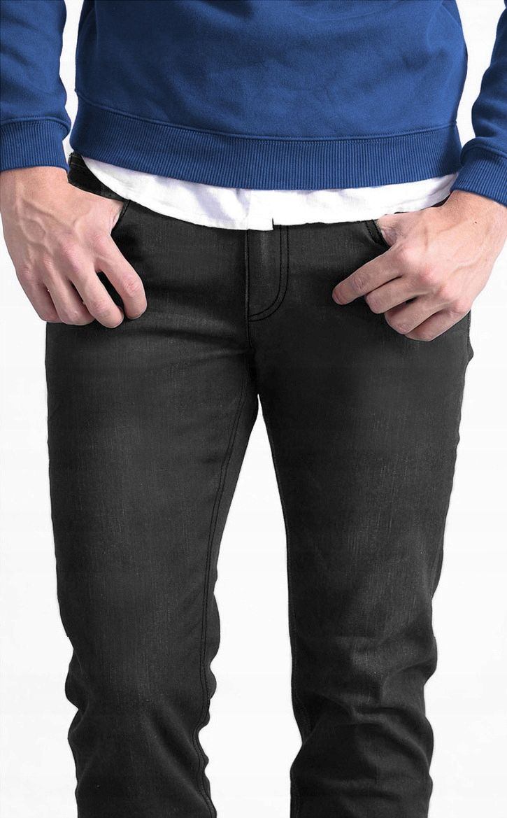 Ciepłe Spodnie Męskie Czarne Jeansy Ocieplone Polarem