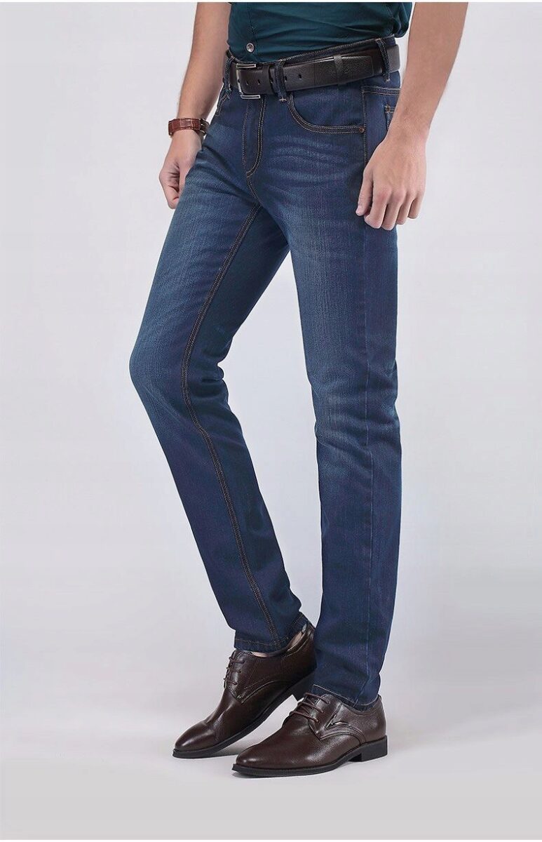 Spodnie mają zawsze modny klasyczny krój z prostą nogawką. Zapinane są na zamek błyskawiczny i guzik. Z przodu dwie kieszenie wpuszczane, z tyłu dwie kieszenie naszywane jak w typowych spodniach jeansowych. W pasie szlufki umożliwiające stylizacje z paskiem. Najbardziej podatne na uszkodzenia miejsca wzmocnione są dodatkowymi przeszyciami oraz nitami. Uszyte z mocnego denimu z niewielkim dodatkiem spandeksu, dzięki czemu spodnie są bardziej elastyczne co daje komfort przy siadaniu i zapewnia ogromny komfort noszenia. Na nogawkach efektowne pomięcia. Natomiast wykończenie wewnętrznej strony spodni polarem, zapewnia bardzo wysoki wskaźnik ochrony termicznej jak również zdecydowanie podnosi komfort użytkowania tych spodni jesienią a zwłaszcza zimą.