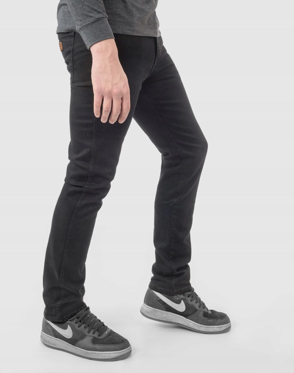 Fason typu REGULAR FIT czyli model z prostymi nogawkami i standardowym stanem, stylowy i równocześnie wygodny, wyraźnie wysmuklający męską sylwetkę. Jest to wszechstronny krój pasujący niemal do każdego typu sylwetki. Świetnie wyglądają zestawione z t-shirtem lub koszulą oraz skórzaną kurtką. Doskonale wpisują się w światowe modowe trendy i są przy tym wygodne i trwałe.