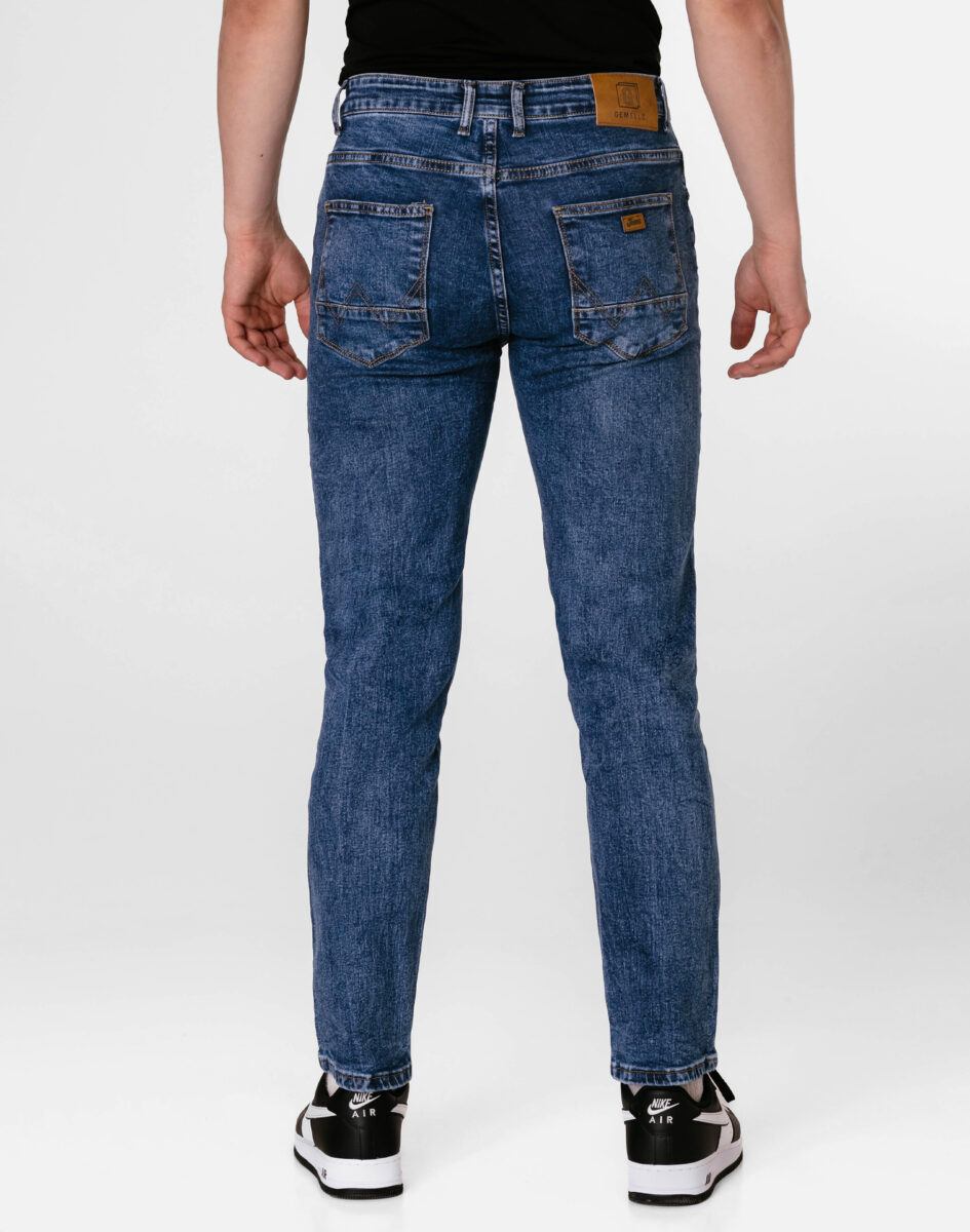 Niebieskie spodnie jeansowe ze standardowym stanem i wąską nogawką typu "rurka" to jeden z najczęściej wybieranych modeli spodni. Niesłychanie wygodne i praktyczne podczas użytkowania, wykonane z wysokiej jakości solidnej, trwałej i mocnej tkaniny bawełnianej z dodatkiem PE (stretch). Niewielki dodatek PE ( stretch) sprawia że spodnie są bardziej elastyczne, dobrze dopasowują się do sylwetki, i są bardzo komfortowe w użytkowaniu. Łatwo się je zakłada i są znacznie wygodniejsze od jeansów, które lycry nie mają. Poza tym bawełna ma tendencję do kurczenia się w praniu, dlatego stretch sprawia, że spodnie są wyjątkowo praktyczne i można je bez problemu założyć po wysuszeniu. Pozwalają na pełną swobodę ruchów, co daje wygodę przy siadaniu i zapewnia ogromny komfort noszenia. Zapinane na kryty zamek błyskawiczny i metalowy guzik sygnowany logiem firmy. Z przodu mają dwie zaokrąglone kieszonki oraz jedną mniejszą tzw. bilonówkę, a na tyle klasyczne naszywane kieszenie jak w typowych spodniach jeansowych. Najbardziej podatne na uszkodzenia miejsca wzmocnione są dodatkowymi przeszyciami oraz metalowymi nitami. W pasie szlufki umożliwiające stylizacje z paskiem.