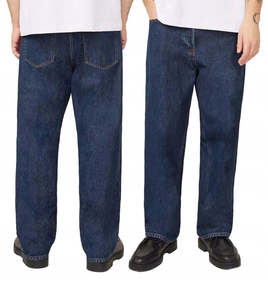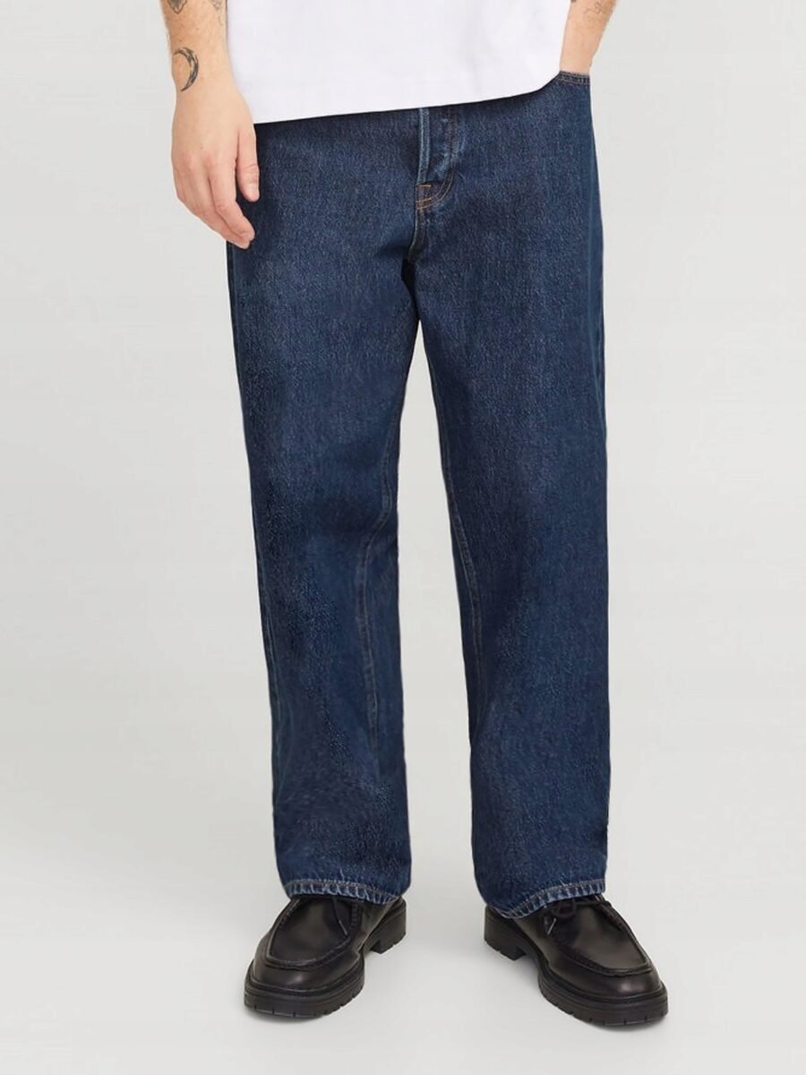 Klasyczne i ponadczasowe spodnie męskie jeansowe model 9228#, umiarkowanie swobodne w biodrach, o prostych, smukłych nogawkach to jeden z najczęściej wybieranych przez mężczyzn modeli spodni. Wykonane z wysokiej jakości sprężystej, trwałej i mocnej tkaniny jeansowej w kolorze granatowym "Dark Blue" dzięki niewielkiemu dodatkowi spandexu (stretch) wyjątkowo wygodnej w użytkowaniu. Niewielki dodatek spandexu sprawia że spodnie są bardziej elastyczne, dobrze dopasowują się do sylwetki, i są bardzo komfortowe w użytkowaniu. Łatwo się je zakłada i są znacznie wygodniejsze od jeansów, które streczu nie mają. Poza tym bawełna ma tendencję do kurczenia się w praniu, dlatego strecz sprawia, że spodnie są wyjątkowo praktyczne i można je bez problemu założyć po wysuszeniu. Pozwalają na pełną swobodę ruchów, co daje wygodę przy siadaniu i zapewnia ogromny komfort noszenia. Zapinane na kryty zamek błyskawiczny i metalowy guzik sygnowany logiem firmy. Z przodu mają dwie zaokrąglone kieszonki oraz jedną mniejszą tzw. bilonówkę, a na tyle klasyczne naszywane kieszenie jak w typowych spodniach jeansowych. Najbardziej podatne na uszkodzenia miejsca wzmocnione są podwójnymi przeszyciami oraz metalowymi nitami. W pasie szlufki umożliwiające stylizacje z paskiem.