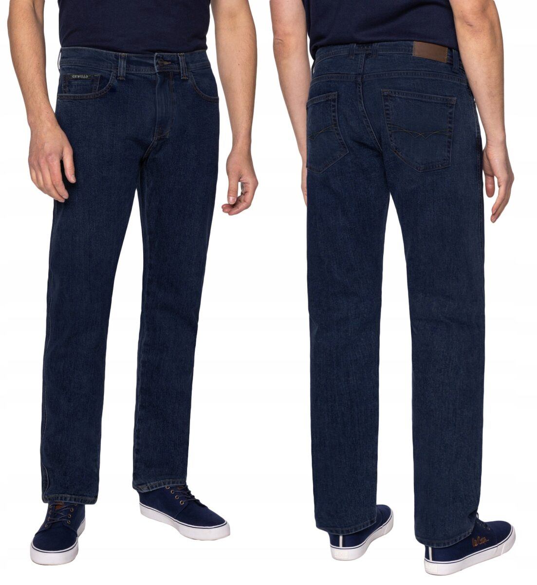Klasyczne i ponadczasowe spodnie męskie jeansowe, umiarkowanie swobodne w biodrach, o lekko zwężanych nogawkach to jeden z najczęściej wybieranych przez mężczyzn modeli spodni. Wykonane z wysokiej jakości sprężystej, trwałej i mocnej tkaniny jeansowej w kolorze granatowym „Dark Blue” dzięki niewielkiemu dodatkowi poliestru (lycra) wyjątkowo wygodnej w użytkowaniu. Niewielki dodatek lycry sprawia że spodnie są bardziej elastyczne, dobrze dopasowują się do sylwetki, i są bardzo komfortowe w użytkowaniu. Łatwo się je zakłada i są znacznie wygodniejsze od jeansów, które lycry nie mają. Poza tym bawełna ma tendencję do kurczenia się w praniu, dlatego lycra sprawia, że spodnie są wyjątkowo praktyczne i można je bez problemu założyć po wysuszeniu. Pozwalają na pełną swobodę ruchów, co daje wygodę przy siadaniu i zapewnia ogromny komfort noszenia. Zapinane na kryty zamek błyskawiczny i metalowy guzik sygnowany logiem firmy. Z przodu mają dwie zaokrąglone kieszonki oraz jedną mniejszą tzw. bilonówkę, a na tyle klasyczne naszywane kieszenie jak w typowych spodniach jeansowych. Najbardziej podatne na uszkodzenia miejsca wzmocnione są podwójnymi przeszyciami oraz metalowymi nitami. W pasie szlufki umożliwiające stylizacje z paskiem.