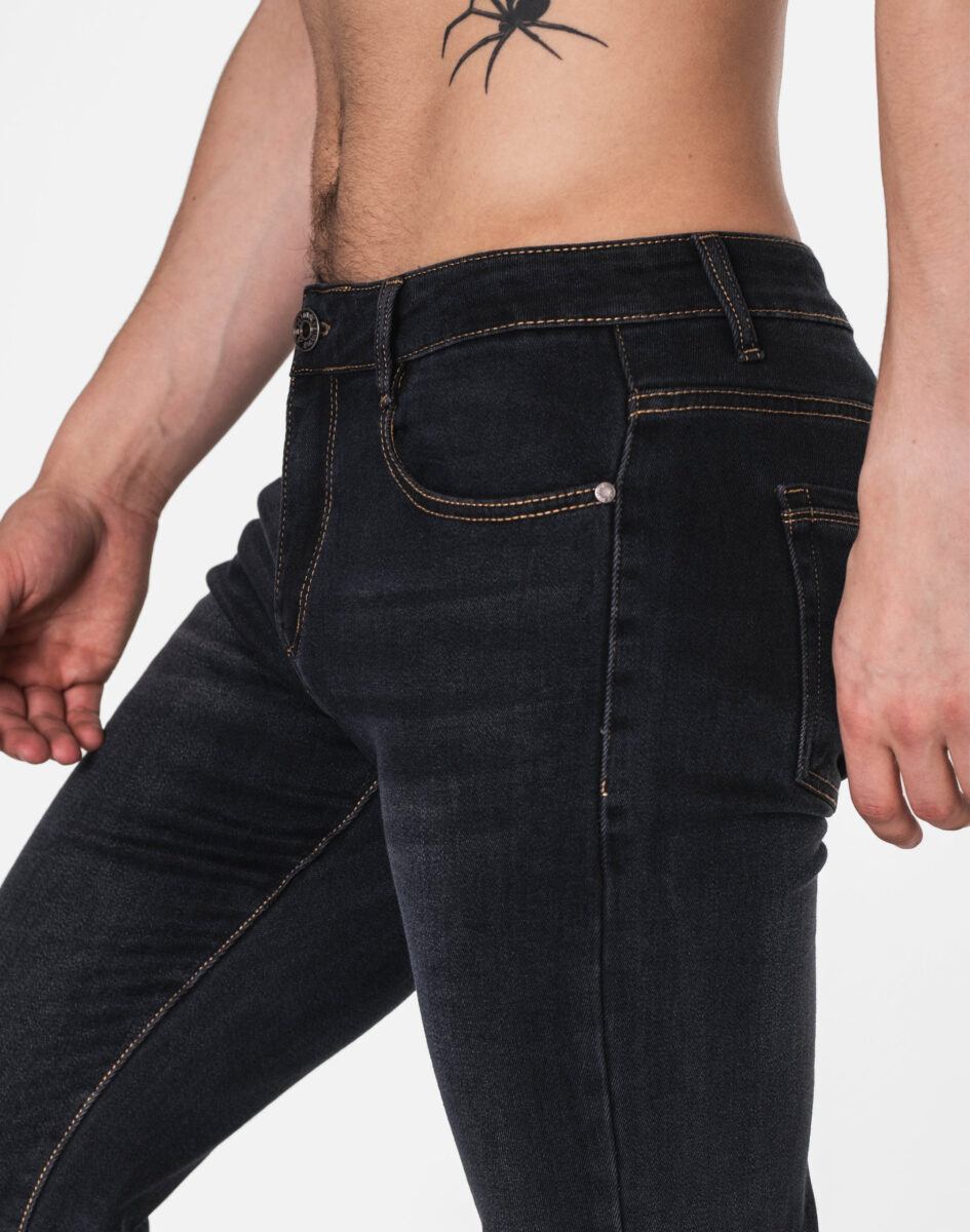 Grafitowe spodnie jeansowe ze standardowym stanem i wąską nogawką typu "rurka" to jeden z najczęściej wybieranych modeli spodni. Niesłychanie wygodne i praktyczne podczas użytkowania, wykonane z wysokiej jakości solidnej, trwałej i mocnej tkaniny bawełnianej z dodatkiem spandexu (stretch). Niewielki dodatek spandexu ( stretch) sprawia że spodnie są bardziej elastyczne, dobrze dopasowują się do sylwetki, i są bardzo komfortowe w użytkowaniu. Łatwo się je zakłada i są znacznie wygodniejsze od jeansów, które lycry nie mają. Poza tym bawełna ma tendencję do kurczenia się w praniu, dlatego stretch sprawia, że spodnie są wyjątkowo praktyczne i można je bez problemu założyć po wysuszeniu. Pozwalają na pełną swobodę ruchów, co daje wygodę przy siadaniu i zapewnia ogromny komfort noszenia. Zapinane na kryty zamek błyskawiczny i metalowy guzik sygnowany logiem firmy. Z przodu mają dwie zaokrąglone kieszonki oraz jedną mniejszą tzw. bilonówkę, a na tyle klasyczne naszywane kieszenie jak w typowych spodniach jeansowych. Najbardziej podatne na uszkodzenia miejsca wzmocnione są dodatkowymi przeszyciami oraz metalowymi nitami. W pasie szlufki umożliwiające stylizacje z paskiem.