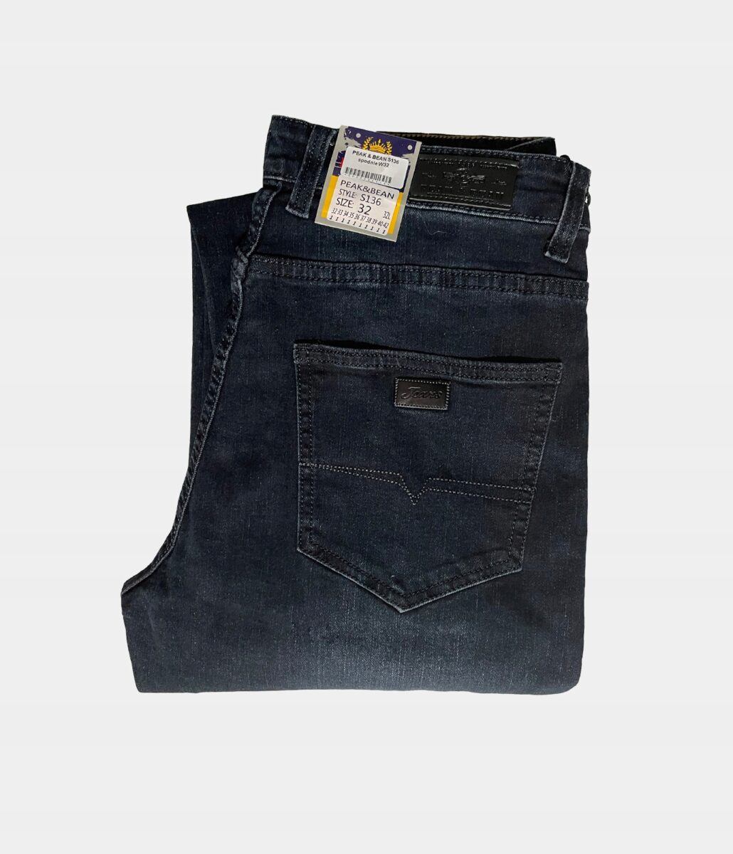 Klasyczne i ponadczasowe spodnie męskie jeansowe, umiarkowanie swobodne w biodrach, o prostych, smukłych nogawkach to jeden z najczęściej wybieranych przez mężczyzn modeli spodni. Wykonane z wysokiej jakości sprężystej, trwałej i mocnej tkaniny jeansowej w kolorze grafitowym „Midnight Blue” dzięki niewielkiemu dodatkowi poliestru (lycra) wyjątkowo wygodnej w użytkowaniu. Niewielki dodatek lycry sprawia że spodnie są bardziej elastyczne, dobrze dopasowują się do sylwetki, i są bardzo komfortowe w użytkowaniu. Łatwo się je zakłada i są znacznie wygodniejsze od jeansów, które lycry nie mają. Poza tym bawełna ma tendencję do kurczenia się w praniu, dlatego lycra sprawia, że spodnie są wyjątkowo praktyczne i można je bez problemu założyć po wysuszeniu. Pozwalają na pełną swobodę ruchów, co daje wygodę przy siadaniu i zapewnia ogromny komfort noszenia. Zapinane na kryty zamek błyskawiczny i metalowy guzik sygnowany logiem firmy. Z przodu mają dwie zaokrąglone kieszonki oraz jedną mniejszą tzw. bilonówkę, a na tyle klasyczne naszywane kieszenie jak w typowych spodniach jeansowych. Najbardziej podatne na uszkodzenia miejsca wzmocnione są podwójnymi przeszyciami oraz metalowymi nitami. W pasie szlufki umożliwiające stylizacje z paskiem.