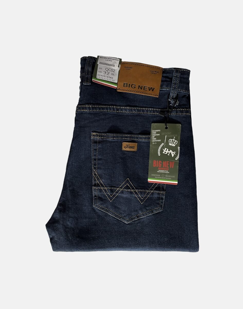 Spodnie jeansowe męskie model #QC02 to klasyka wśród klasyki. Wiele innych trendów ulega zmianom, a granatowe jeansowe spodnie z klasyczną lekko zwężaną nogawką pozostają, bo trudno o bardziej praktyczny element męskiej garderoby.