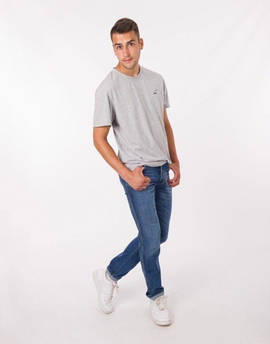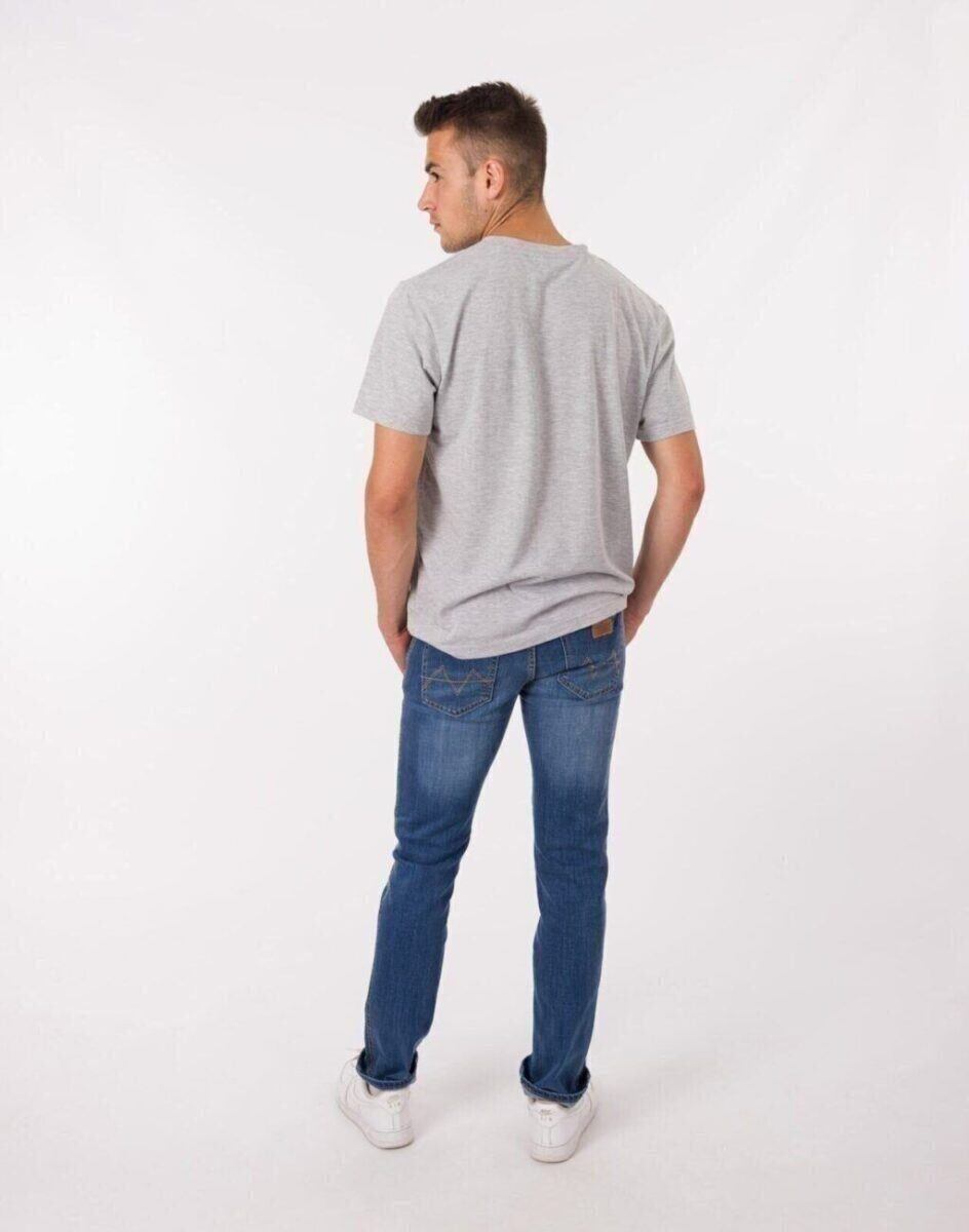 - Wzór: ozdobnie sprany Denim Jeans z fabrycznym efektem „used-look” – rozjaśnieniami, przetarciami i pomięciami
