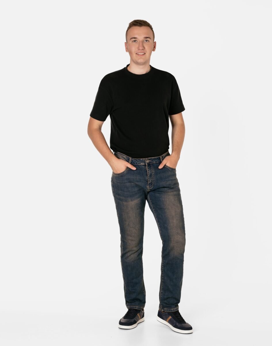 - Dwie wpuszczane kieszenie z przodu + bilonówka, dwie naszywane kieszenie z tyłu