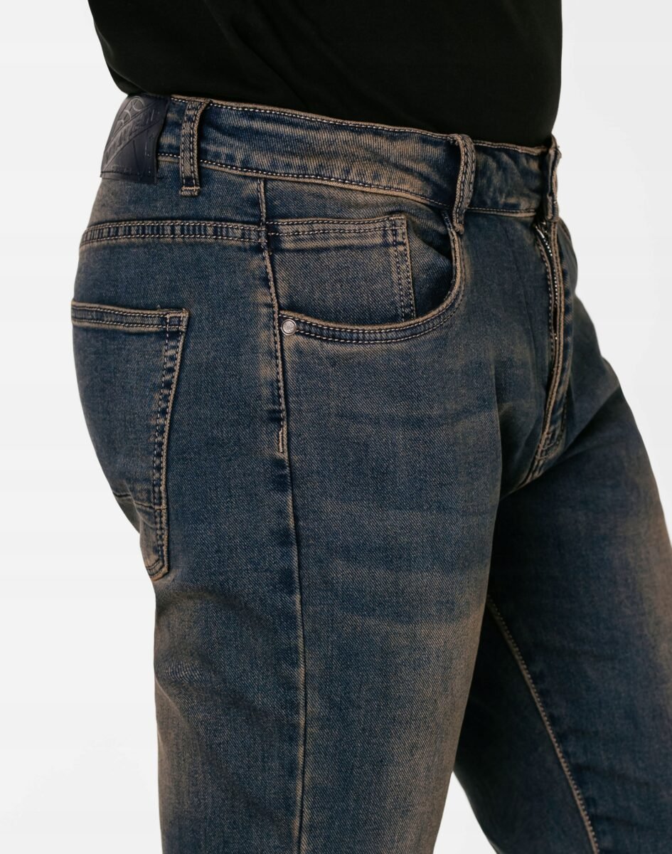 Spodnie z fabrycznym efektem znoszonego, zniszczonego jeansu "used-look" (zużyty wygląd), w procesie produkcji poddane zostały specjalnym zabiegom postarzającym materiał polegającym na wycieraniu, wielokrotnym wypieraniu barwnika i tworzeniu na spodniach atrakcyjnych rozjaśnień, przebarwień i przetarć. Efektowne rozjaśnienia i przetarcia mają na celu wywołanie tak obecnie modnego efektu starych, długo noszonych jeansów. Świetnie prezentują się na sportowo z krótkimi skórzanymi kurtkami czy bluzami z kapturem. Zgrabnie przylegają do ciała i pozwalają na pełną swobodę ruchów, co daje wygodę przy siadaniu i zapewnia ogromny komfort noszenia. Zapewniają połączenie nowoczesnego, modowego trendu przy jednoczesnym zachowaniu komfortu, wygody i swobody ruchów a sylwetka wygląda w nich niezwykle i z pewnością zwróci uwagę innych na ulicy.