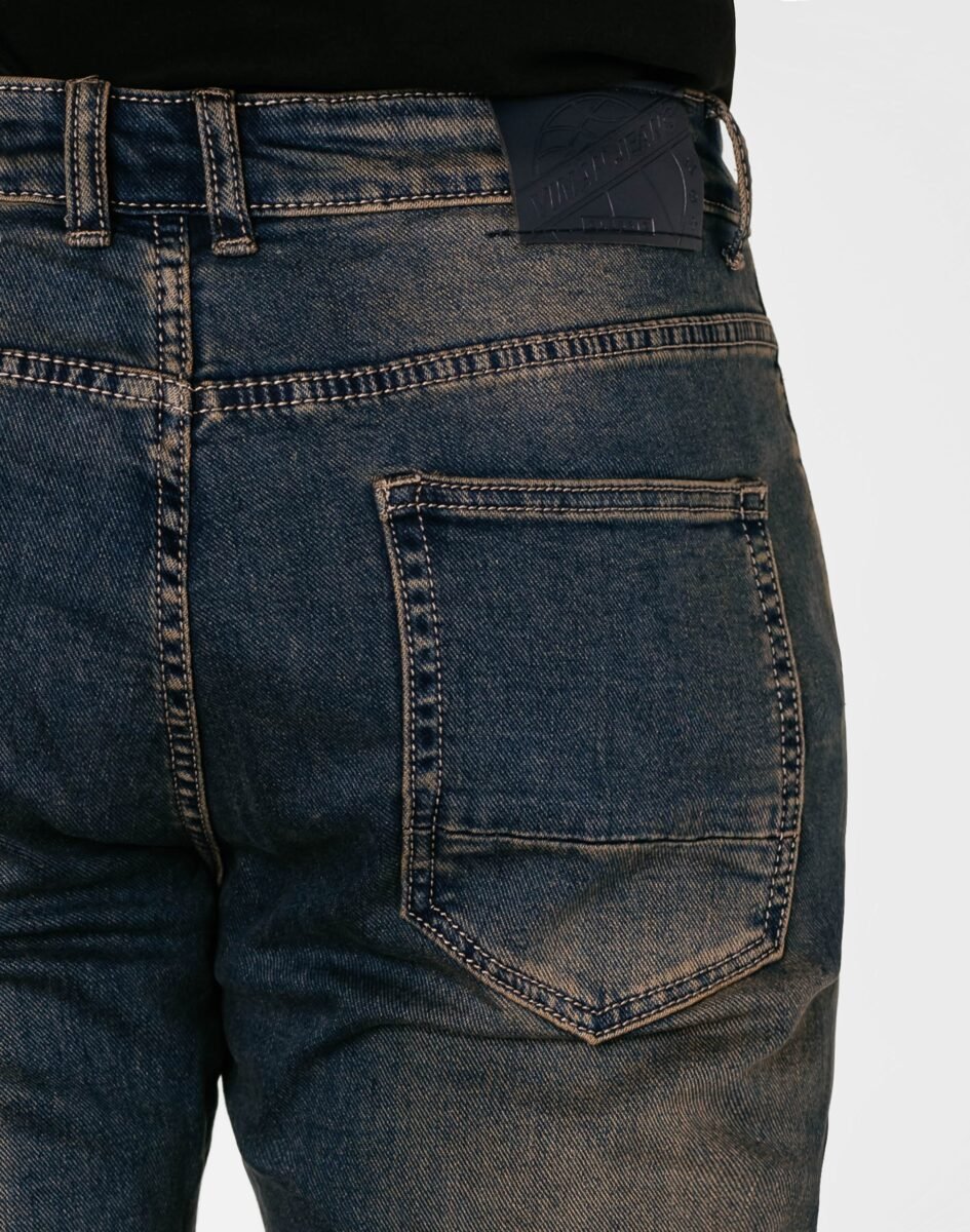 Kolor: granatowy "Dark Blue" z fabrycznym efektem znoszonego, zniszczonego jeansu "used-look"