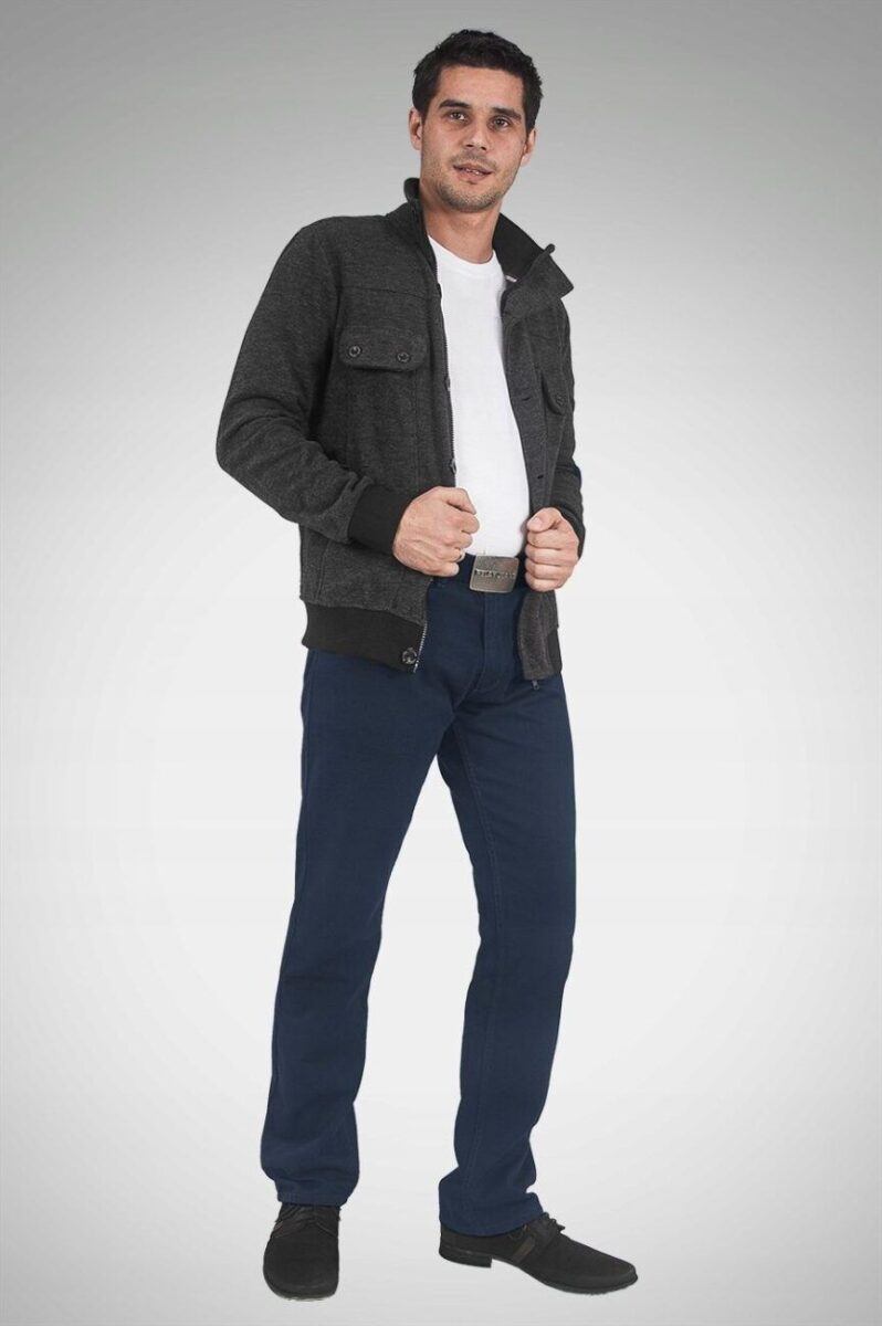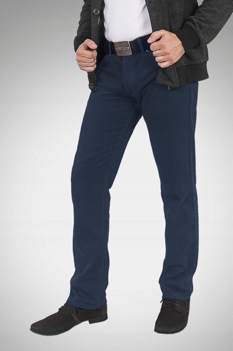 Fason typu REGULAR FIT czyli model z lekko zwężanymi nogawkami i standardowym stanem, stylowy i równocześnie wygodny, wyraźnie wysmuklający męską sylwetkę. Jest to tradycyjny fason męskich spodni, który ma świetnie wyprofilowane nogawki i wygląda dobrze na każdym, a dzięki dodatkowi elastanu jest również wyjątkowo wygodny. Idealne nie tylko na co dzień lecz również jako element stroju do pracy. Doskonale wpisują się w światowe modowe trendy i są przy tym wygodne i trwałe. W zależności od dopasowanego do nich elementu garderoby będziesz zawsze odpowiednio ubrany na każdą okazję, zarówno na „sportowo” jak i na „elegancko” bo ta sama para spodni z marynarką czy koszulą tworzy styl bardziej formalny, natomiast z T-shirtem doskonale nadaje się na weekendowe spotkania. Idealny wybór dla mężczyzn ceniących nowoczesne rozwiązania, sportowy wygodny styl i nienaganną elegancję.
