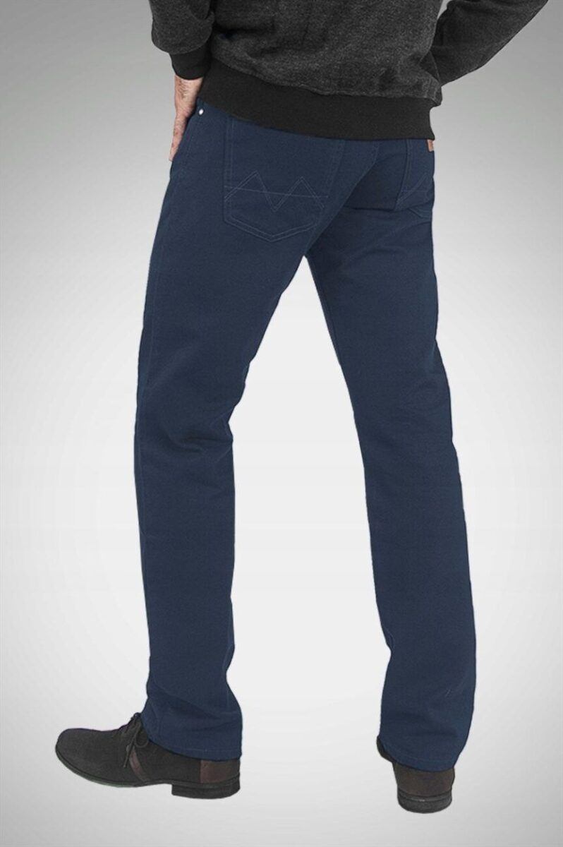 Niesłychanie wygodne i praktyczne podczas użytkowania spodnie męskie bawełniane polskiej firmy HUNTER ze standardowym stanem i klasyczną lekko zwężaną nogawką to jeden z najczęściej wybieranych modeli spodni. Wykonane z wysokiej jakości trwałej i mocnej tkaniny bawełnianej o gęstym, drobnym splocie i jednolitym granatowym wybarwieniu. Zapinane są na kryty zamek błyskawiczny i metalowy guzik sygnowany logiem firmy. Z przodu mają dwie kieszonki zaokrąglone oraz mniejszą kieszonkę tzw. bilonówkę, a na tyle klasyczne kieszenie naszywane jak w typowych spodniach jeansowych. W pasie szlufki umożliwiające stylizacje z paskiem. Najbardziej podatne na uszkodzenia miejsca wzmocnione są dodatkowymi przeszyciami oraz nitami.