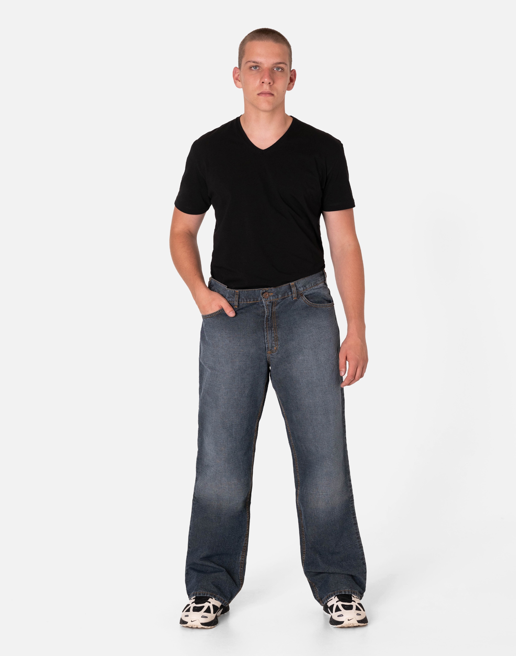 Kolor: szaro-niebieski "Grey Blue" z modnymi przetarciami
