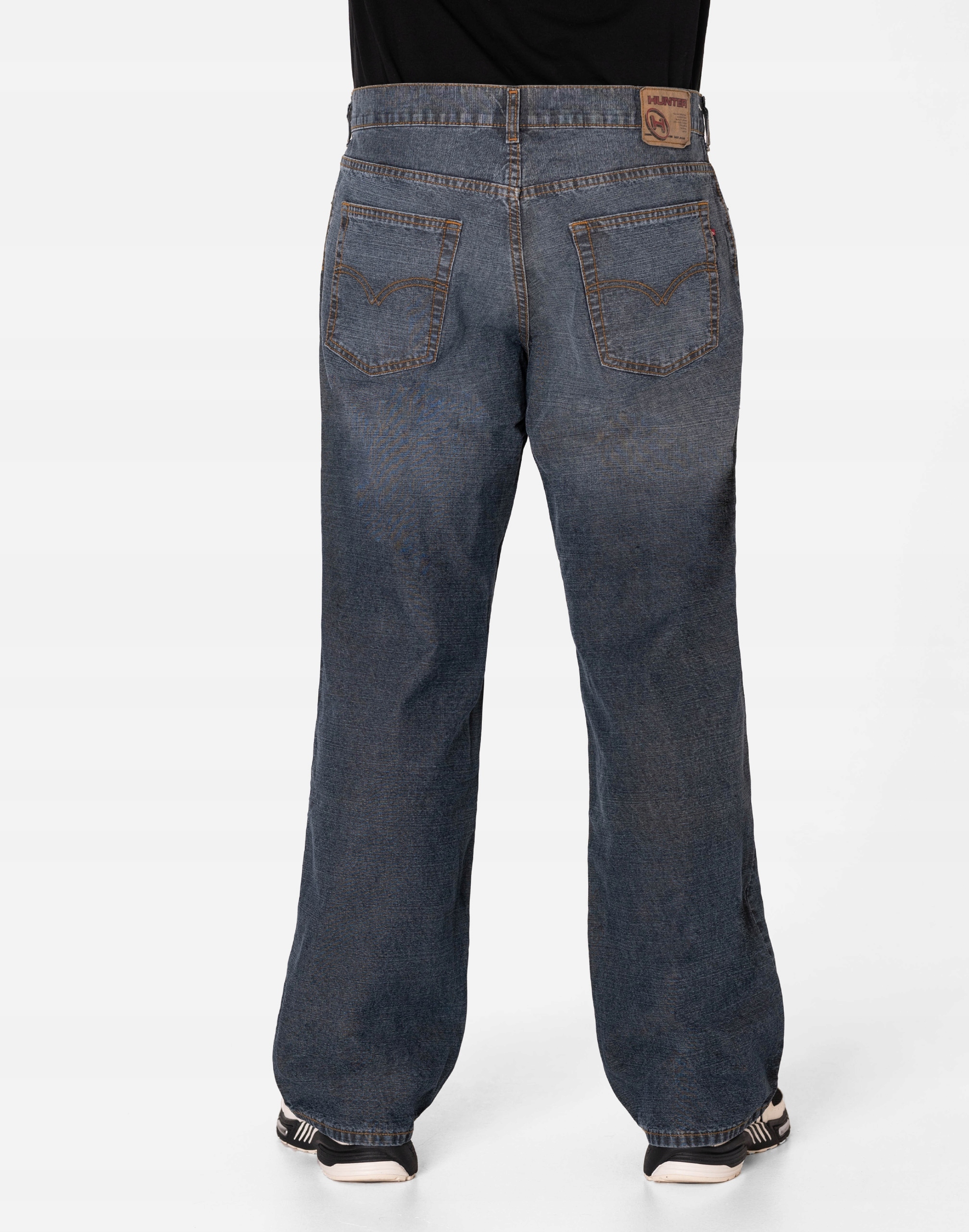 Jeansy oversize Baggy Wide Leg polskiej firmy HUNTER w kolorze szaro-niebieskim "Grey Blue" z przetarciami, o charakterystycznym dla tego modelu luźnym, oversizowym kroju z szerokimi luźnymi nogawkami. Niepodważalną zaletą tych spodni jest na pewno ich luźna i bardzo wygodna forma. Nie wpijają się to tu, to tam. Swobodnie leżą na biodrach i miękko opadają w dół. Nie krępują ruchów i nie pękają w kroku, gdy za wysoko podniesiesz nogę. Wykonane z wysokiej jakości gęstej, trwałej i mocnej tkaniny jeansowej z modnym efektem sprania i przetarciami w nieśmiertelnym stylu "used-look". Mają luźny, prosty krój i zapinane są na zamek błyskawiczny i guzik sygnowany logiem firmy. Z przodu mają dwie zaokrąglone kieszonki, oraz mniejszą tzw. bilonówkę. Na tyle klasyczne kieszenie naszywane jak w typowych spodniach jeansowych. W pasie szlufki do stylizacji z paskiem. Najbardziej podatne na uszkodzenia miejsca wzmocnione są podwójnymi szwami co sprawia, że spodnie są bardziej wytrzymałe. Zaprezentują Cię jako osobę, która lubi czuć się wygodnie i uwielbia bawić się stylem łączącym praktyczność z modą uliczną, który cieszy się ogromną popularnością nie tylko wśród młodego pokolenia, ale i starszych sympatyków atrakcyjnego "noszenia się".