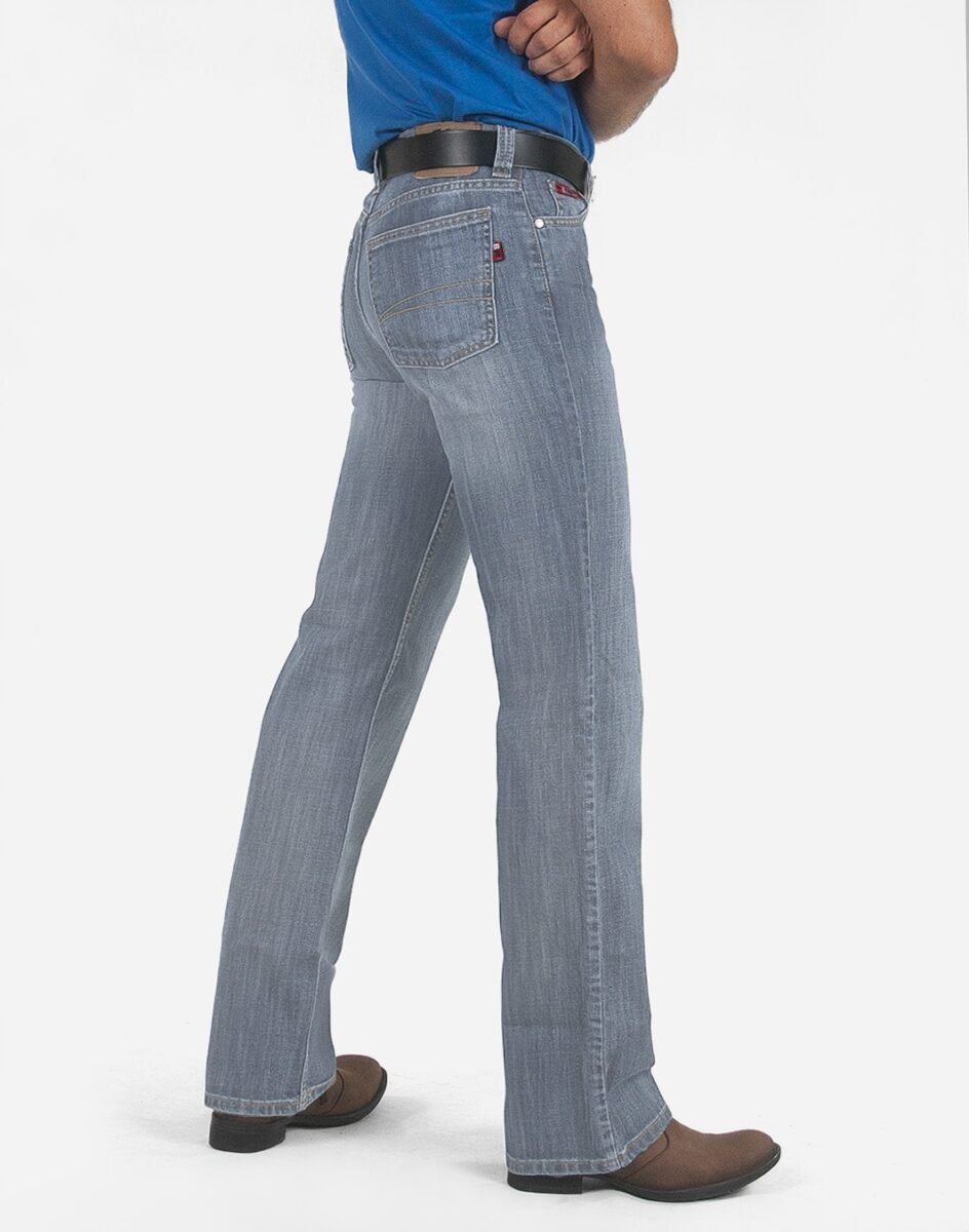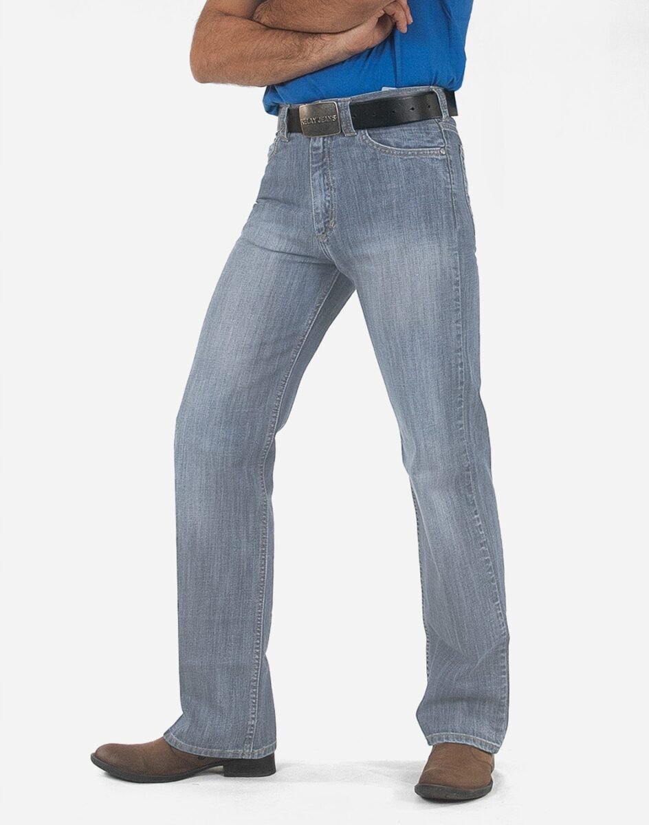 Klasyczne i ponadczasowe spodnie męskie jeansowe model 493#, umiarkowanie swobodne w biodrach, o prostych, smukłych nogawkach to jeden z najczęściej wybieranych przez mężczyzn modeli spodni. Wykonane z wysokiej jakości sprężystej, trwałej i mocnej tkaniny jeansowej w kolorze niebieskim "Denim Light Blue". Zapinane na kryte metalowe guziki sygnowane logiem firmy. Z przodu mają dwie zaokrąglone kieszonki oraz jedną mniejszą tzw. bilonówkę, a na tyle klasyczne naszywane kieszenie jak w typowych spodniach jeansowych. Najbardziej podatne na uszkodzenia miejsca wzmocnione są podwójnymi przeszyciami oraz metalowymi nitami. W pasie szlufki umożliwiające stylizacje z paskiem.