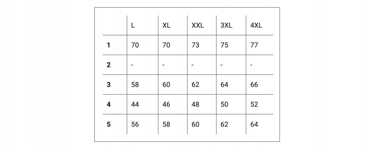 Proszę nie sugerować się rozmiarem podanym na metce przez producenta ( np: L, XXL czy 4XL) ponieważ różne firmy stosują bardzo różne oznaczenia rozmiaru na co my jako sprzedawcy na Allegro nie mamy żadnego wpływu. Najlepiej jest zmierzyć się dokładnie centymetrem a następnie porównać swoje wymiary z tabelą wymiarów podaną przez nas na aukcji i wybrać odpowiedni rozmiar.