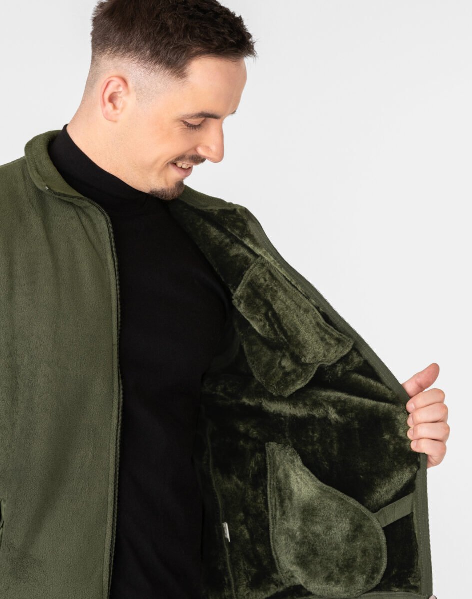 Kamizelka z ciepłego polaru Polarmax ocieplona dodatkowo od środka futerkiem typu "Wellsoft" o dużej gęstości ( 350 g/m2 ) łącząca w sobie skuteczną izolację przed zimnem oraz niską wagę. Włókna polarowe tworzą miliony komórek powietrznych, które utrzymują ciepło wewnątrz zapewniając przez to doskonałą ochronę przed chłodem. Mają puszystą strukturę, która chroni przed wyziębieniem i przegrzaniem zatrzymując w niej część powietrza przy jednoczesnym wyrzucaniu na zewnątrz nadmiaru wilgoci. Dzięki swojej specjalnej strukturze nie absorbują w sobie wilgoci lecz pozwalają jej wyparować na zewnątrz, a sama tkanina pozostaje sucha. Kamizelka jest przez to bardzo ciepła, wygodna i oddychająca (utrzymuje ciepły i suchy mikroklimat skóry), a jednocześnie wyjątkowo lekka. Dzięki tym właściwościom skóra naturalnie oddycha natomiast mikroskopijne torebki powietrza w strukturze materiału utrzymują właściwą ciepłotę ciała. Zapewnia bardzo wysoki współczynnik ochrony termicznej w stosunku do wagi w porównaniu do innych polarów. Wewnętrzna strona wykończona ciepłym futerkiem typu "Wellsoft", ma za zadanie zapewnić oddychalność i maksymalną ochronę termiczną w zmiennych warunkach i niskiej temperaturze. Dzięki podwójnej warstwie materiału jest również dwa razy cieplejsza od zwykłej kamizelki z polaru. Takie unikalne połączenie ciepłej dzianiny polarowej Polarmax i ciepłego futerka "Wellsoft" zapewnia bardzo wysoki wskaźnik ochrony termicznej jak również zdecydowanie podnosi komfort użytkowania jesienią a zwłaszcza zimą.