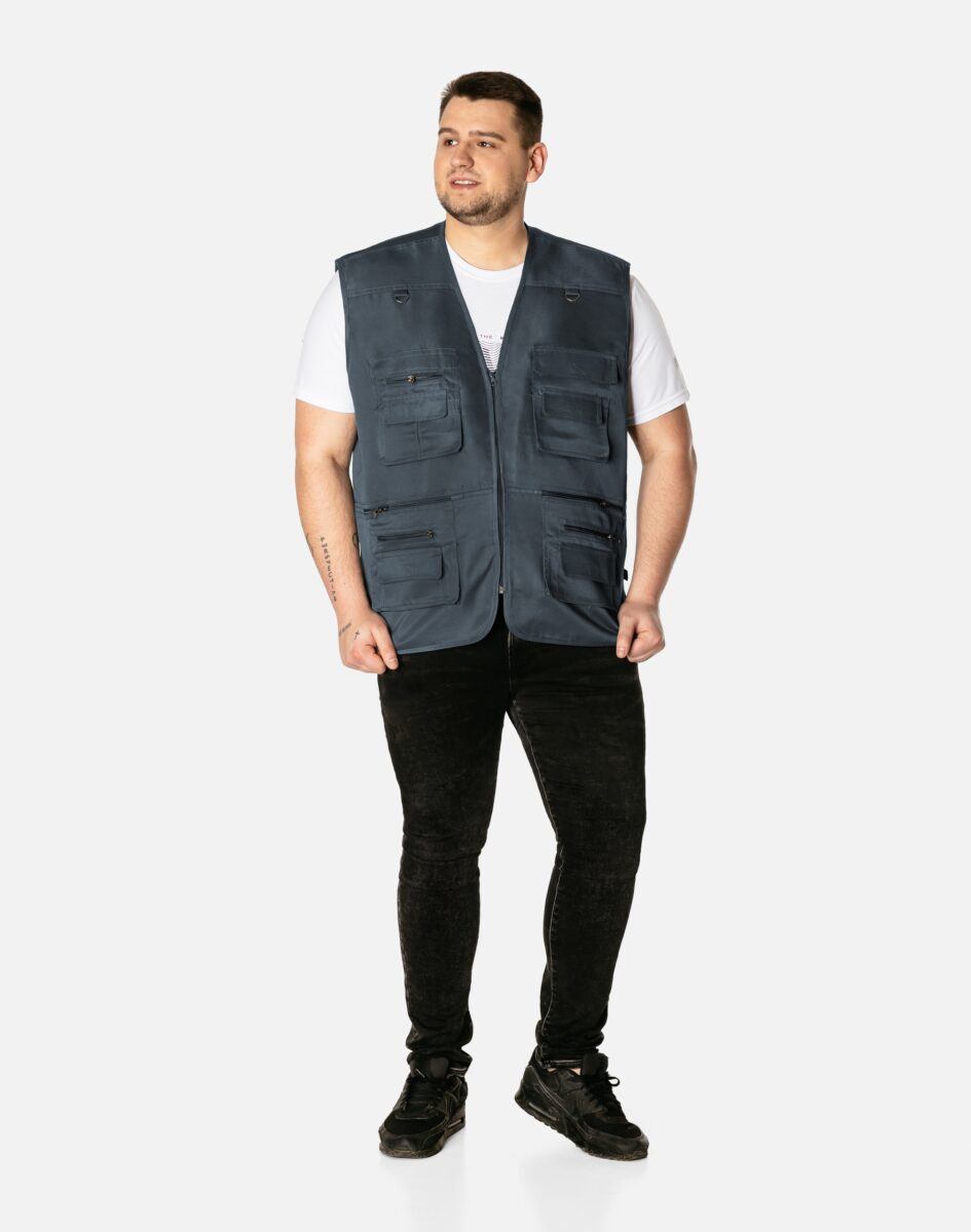 Kamizelka jeansowa typu SAFARI z 14 kieszeniami sprawi, że schowasz w niej wiele przydatnych przedmiotów i wszystko co potrzebne np. portfel, telefon, klucze czy inne niezbędne drobiazgi znajdziesz przy sobie. Jest wyjątkowo wygodna a dzięki zastosowaniu wielu zasuwanych kieszeni także bardzo praktyczna. Możesz mieć pewność, że nosząc naszą kamizelkę nic nie zgubisz ani też nie stracisz.