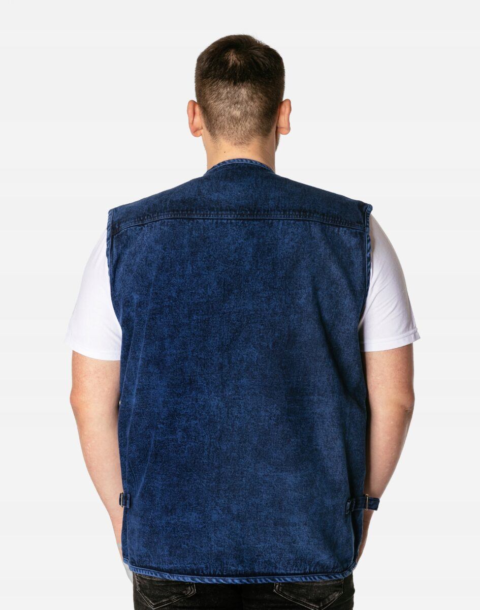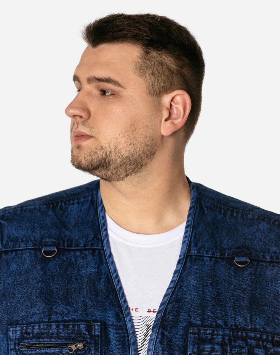 Jeansowa kamizelka męska typu SAFARI o wszechstronnym przeznaczeniu to ulubione okrycie wierzchnie prawdziwych mężczyzn, bo jest wyjątkowo wygodna a dzięki zastosowaniu wielu kieszeni także bardzo praktyczna. Z przodu kieszenie zasuwane są na zamki błyskawiczne i zapinane na rzepy a cztery wewnętrzne kieszenie zasuwane są na zamki błyskawiczne. Uszyta z mocnej tkaniny jeansowej o gęstym, zapewniającym dużą wytrzymałość splocie, co zwiększa odporność na uszkodzenia mechaniczne oraz szybkość transportu wilgoci z powierzchni ciała na zewnątrz. Tkanina jeansowa gwarantuje świetną przepuszczalność powietrza, wchłanianie potu i oddychanie skóry. To również gwarancja zwiększonej wytrzymałości tkaniny oraz stabilności rozmiarów i koloru po wielokrotnym praniu. Zapinana na skrócony zamek błyskawiczny a jej szerokość można regulować metalowymi klamerkami na bokach. Krawędzie kamizelki obszyto lamówką zabezpieczającą materiał przed ewentualnym strzępieniem. Ergonomiczny krój kamizelki nie ogranicza swobody ruchów a właściwa dla odzieży sportowej gramatura wpływają pozytywnie na wygodę użytkowania.