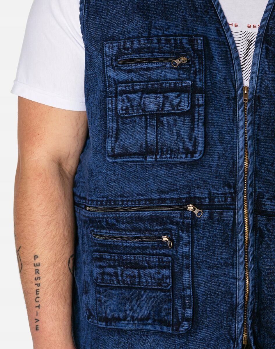 Kamizelka jeansowa typu SAFARI z 14 kieszeniami sprawi, że schowasz w niej wiele przydatnych przedmiotów i wszystko co potrzebne np. portfel, telefon, klucze czy inne niezbędne drobiazgi znajdziesz przy sobie. Jest wyjątkowo wygodna a dzięki zastosowaniu wielu zasuwanych kieszeni także bardzo praktyczna. Możesz mieć pewność, że nosząc naszą kamizelkę nic nie zgubisz ani też nie stracisz.