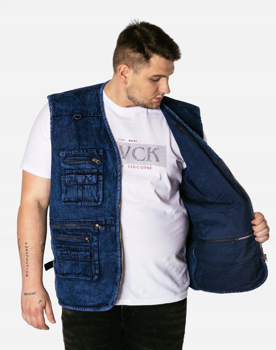 Jeansowa Kamizelka Męska typu Safari z 14 Kieszeniami !!!