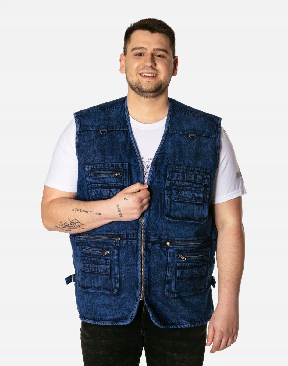 Jeansowa Kamizelka Męska typu Safari z 14 Kieszeniami !!!