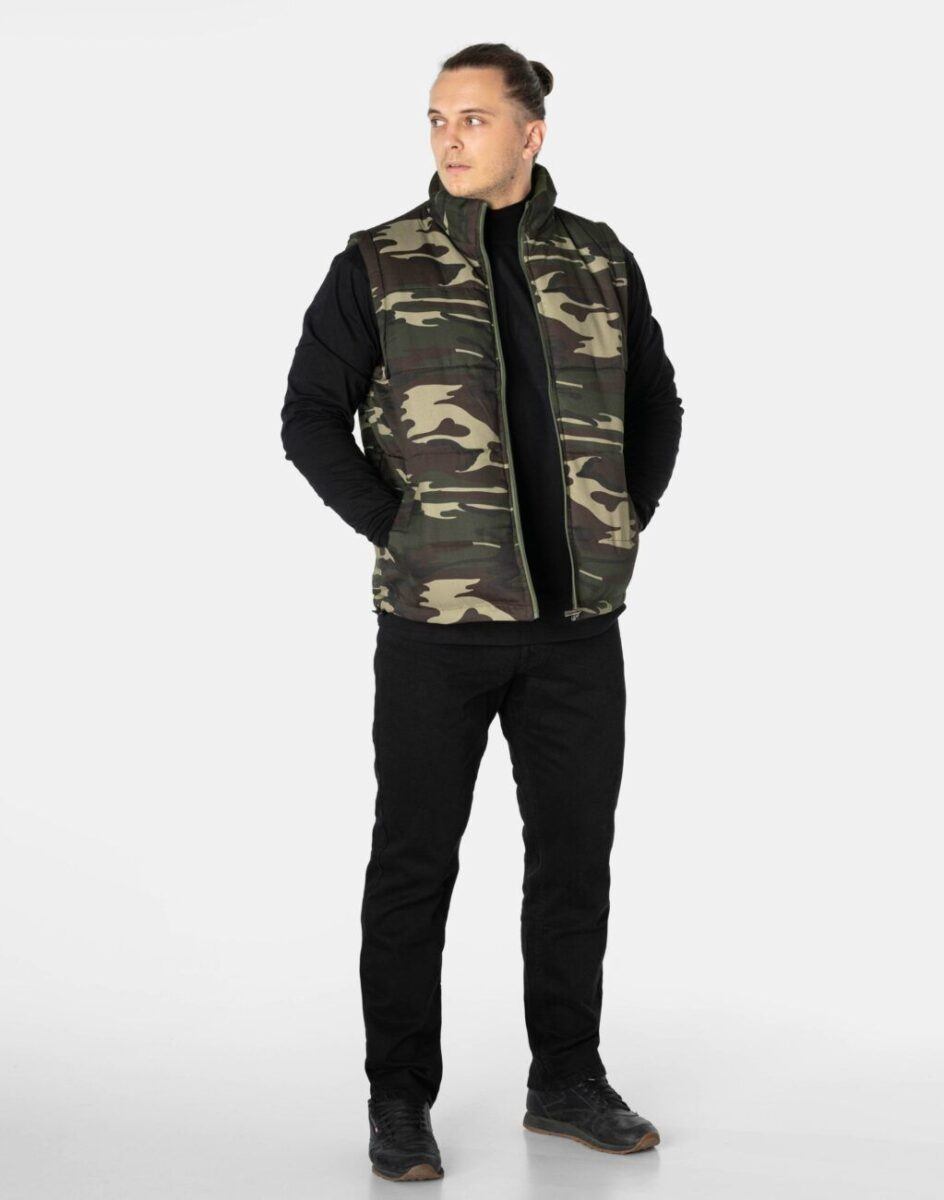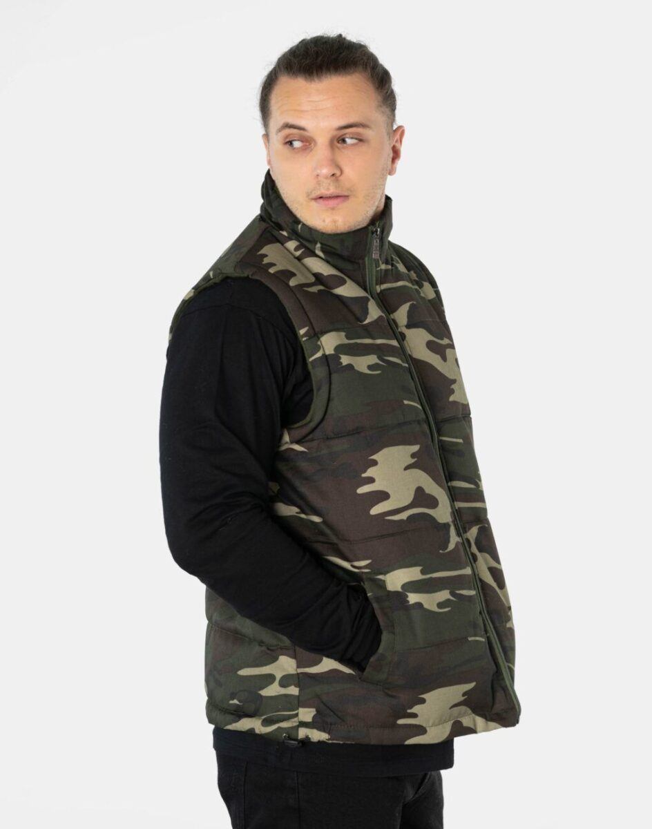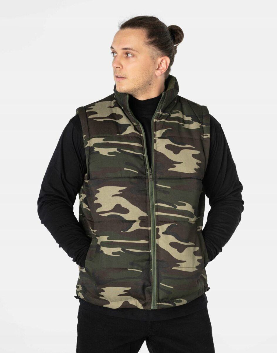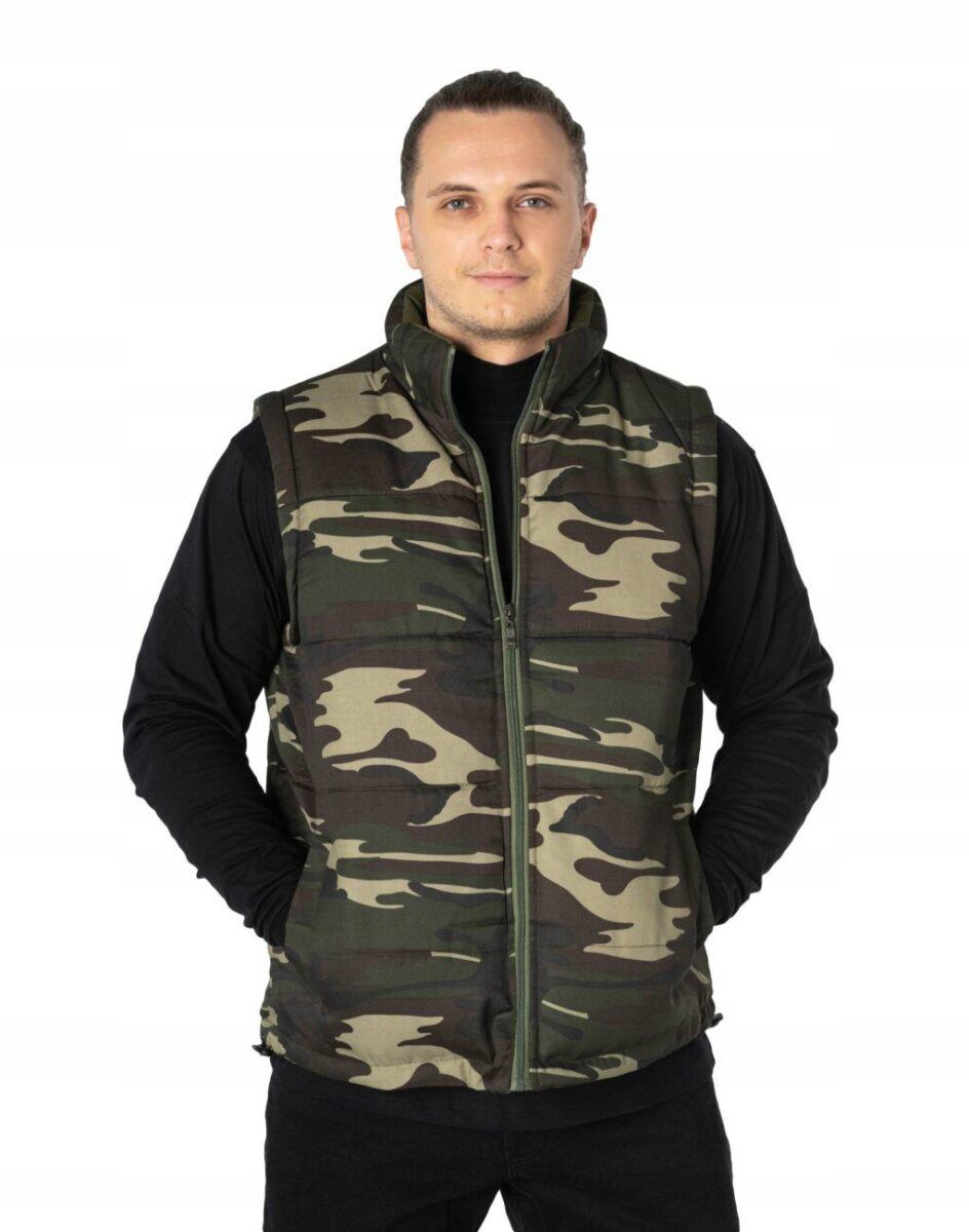Ciepła Sportowa Pikowana Kamizelka Męska Moro z Polarową Podszewką