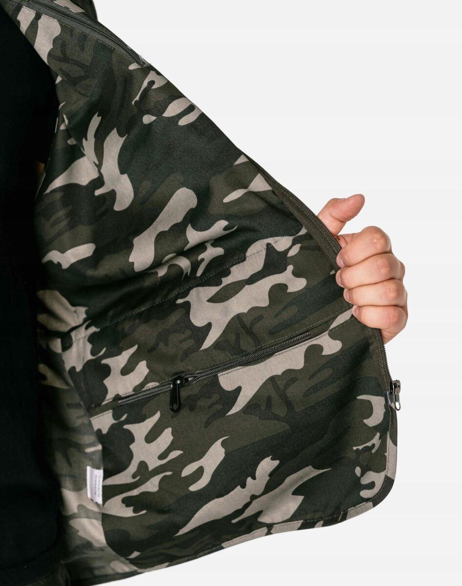 - Fason: kamizelka sportowa Safari moro