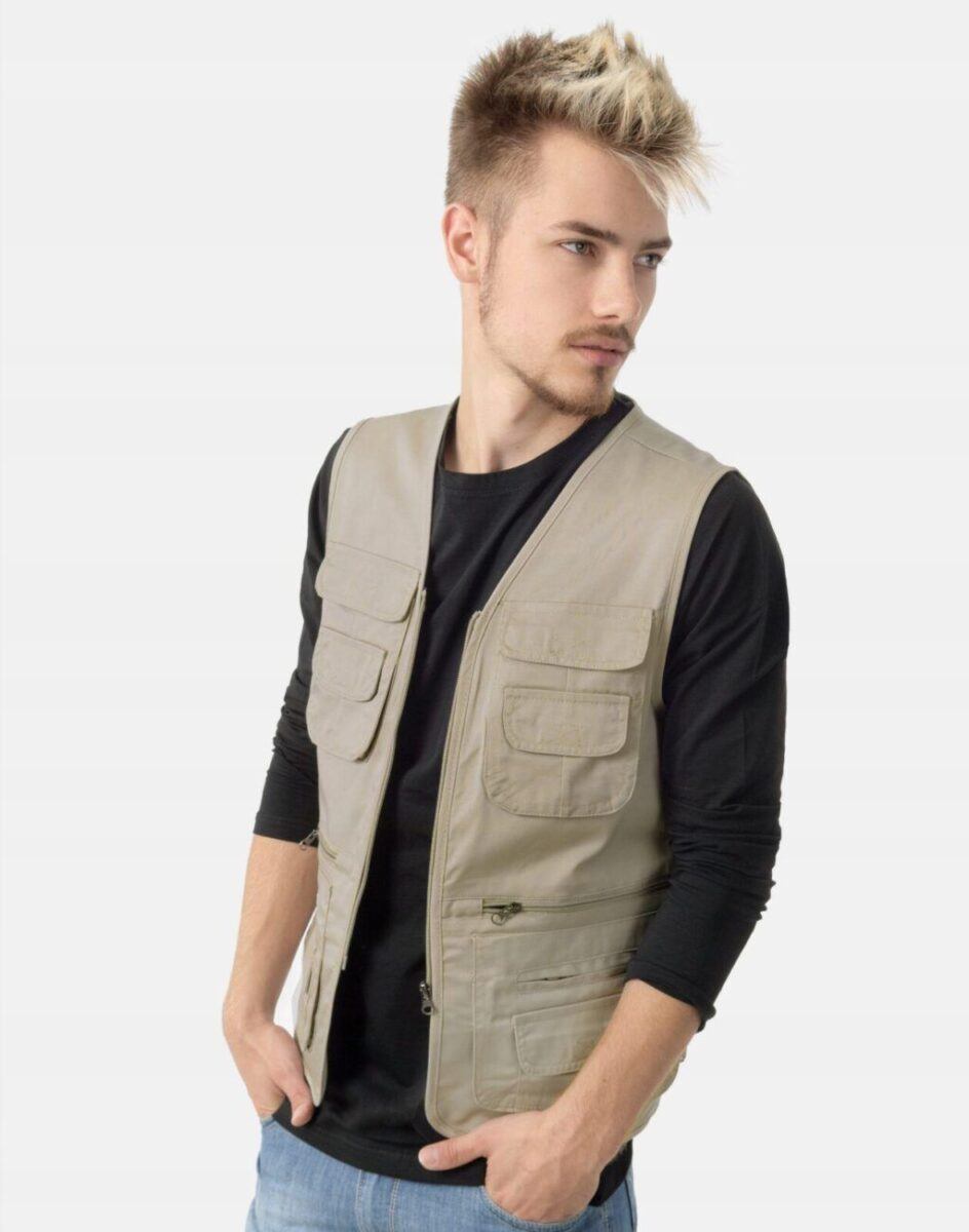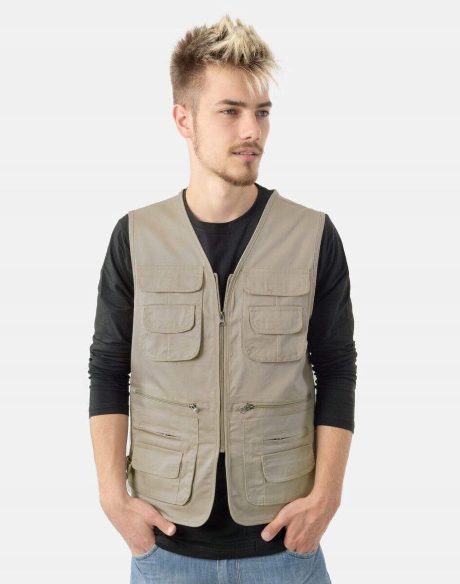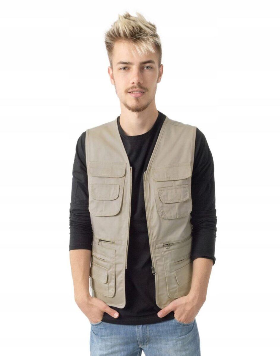 Kamizelka sportowa SAFARI z wieloma kieszeniami sprawi że schowasz w niej wiele przydatnych przedmiotów i wszystko co potrzebne np. portfel, telefon, klucze czy inne niezbędne drobiazgi znajdziesz przy sobie. Jest wyjątkowo wygodna a dzięki zastosowaniu wielu kieszeni także bardzo praktyczna. Możesz mieć pewność, że nosząc naszą kamizelkę nic nie zgubisz ani też nie stracisz.
