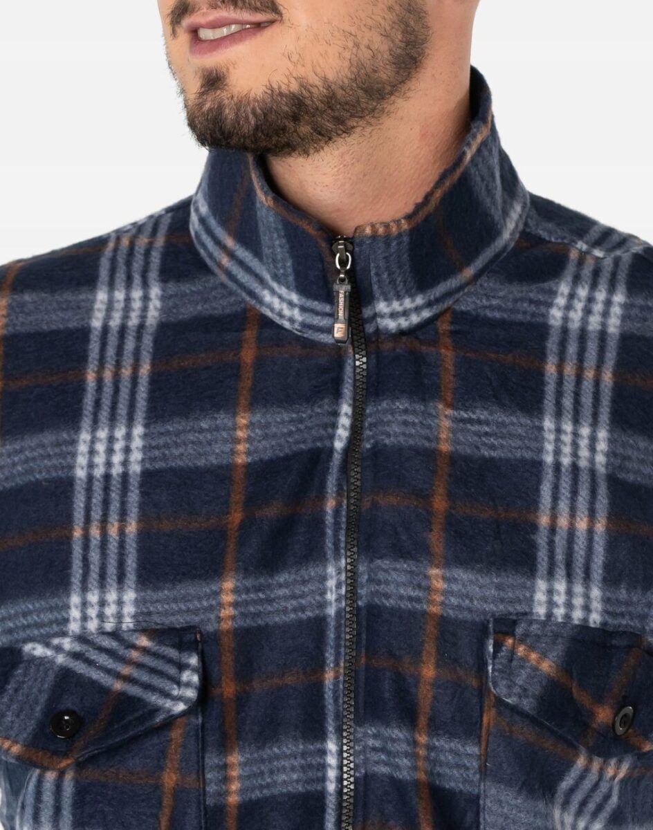 Koszula zapinana jest w całości na zamek błyskawiczny wraz z wysokim kołnierzem-stójką. Na piersiach ma dwie kieszonki kryte patkami zapinanymi na guziki. Rękawy zakończone są elastycznymi ściągaczami. Praktyczny kołnierz/stójka skutecznie chroni podbródek i szyję a często zastępuje nawet szalik co jest bardzo wygodne. Materiał polarowy jest wygodny w noszeniu, szybkoschnący i oddychający. Zapewnia bardzo przyjemny kontakt ze skórą oraz komfort cieplny. Fason typu regular wygodny, nie krepujący ruchów, odpowiednio wykrojony do noszenia na wierzchu.