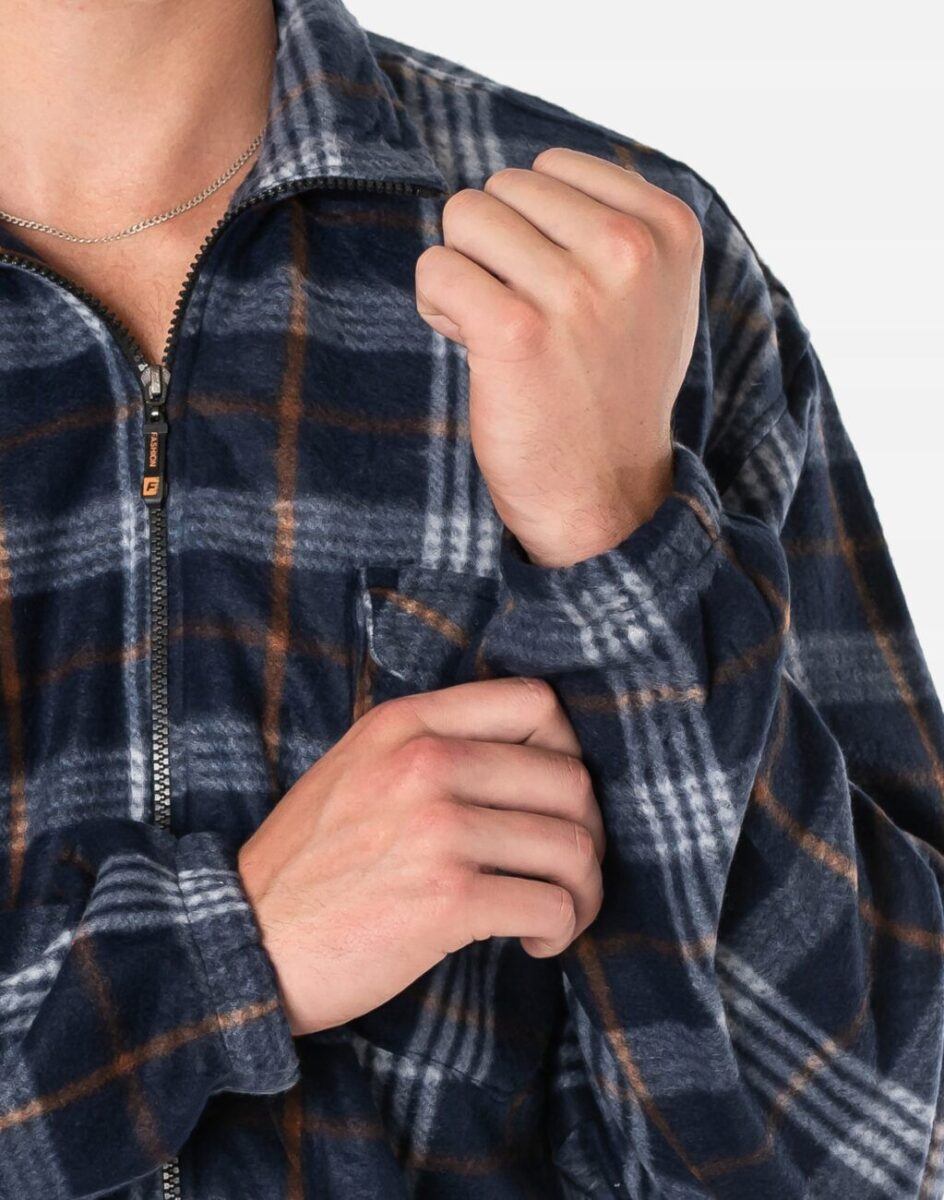 Koszula zapinana jest w całości na zamek błyskawiczny wraz z wysokim kołnierzem-stójką. Na piersiach ma dwie kieszonki kryte patkami zapinanymi na guziki. Rękawy zakończone są elastycznymi ściągaczami. Praktyczny kołnierz/stójka skutecznie chroni podbródek i szyję a często zastępuje nawet szalik co jest bardzo wygodne. Materiał polarowy jest wygodny w noszeniu, szybkoschnący i oddychający. Zapewnia bardzo przyjemny kontakt ze skórą oraz komfort cieplny. Fason typu regular wygodny, nie krepujący ruchów, odpowiednio wykrojony do noszenia na wierzchu.