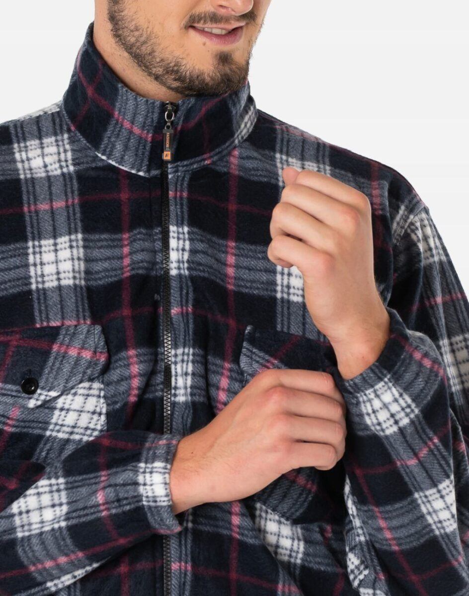 Koszula zapinana jest w całości na zamek błyskawiczny wraz z wysokim kołnierzem-stójką. Na piersiach ma dwie kieszonki kryte patkami zapinanymi na guziki. Rękawy zakończone są elastycznymi ściągaczami. Praktyczny kołnierz/stójka skutecznie chroni podbródek i szyję a często zastępuje nawet szalik co jest bardzo wygodne. Materiał polarowy jest wygodny w noszeniu, szybkoschnący i oddychający. Zapewnia bardzo przyjemny kontakt ze skórą oraz komfort cieplny. Fason typu regular wygodny, nie krepujący ruchów, odpowiednio wykrojony do noszenia na wierzchu.