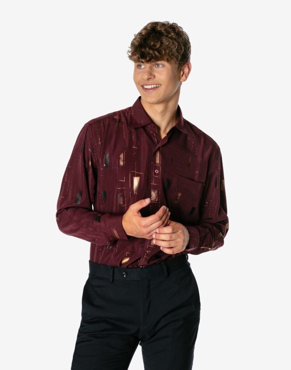 Wykonana z wysokiej jakości cienkiej tkaniny koszulowej co zapewnia duży komfort noszenia. Krój klasyczny, prosty, nie krepujący ruchów, odpowiedni dla panów o szerokich ramionach i dobrze zbudowanym tułowiu. Zapinana w całości na rząd guzików z tradycyjnym kołnierzykiem typu Kent o wąsko rozstawionych rogach. Nadaje się do noszenia z krawatem, ale również bez niego – z rozpiętym pierwszym guzikiem pod szyją. Rękawy zakończone mankietami posiadają regulowane zapięcie na dwa guziki i można je łatwo podwinąć co czyni ją bardziej uniwersalną i nadającą się do noszenia zarówno w ciepłe jak i chłodniejsze dni. Koszula jest wygodna w użytkowaniu, a ciekawie zestawiona może stać się kluczem do stworzenia wyjątkowej stylizacji. Dobrze wygląda bowiem zarówno z eleganckim, formalnym odzieniem, jak i w zestawieniu: marynarka – jeansy czy spodnie z materiału – elegancki sweter. Klasyczny prosty krój fantastycznie pasować będzie do pracy, jak i na rodzinny obiad czy na wieczorne wyjście z kolegami. Wszystko za sprawą różnorodnych stylizacji, które można wyczarować łącząc elegancką koszulę z ozdobnym wzorem z innymi elementami stroju.